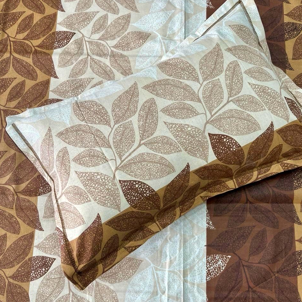 Create a warm, nature-inspired retreat with this Earthy Leaf Print King Size Bedsheet Set. Featuring large, delicately textured leaf motifs in rich brown, tan, and cream tones, this design evokes the calm and grounding feel of a forest in fall. Made from 100% pure cotton casement, it offers a breathable, soft touch and lasting comfort.This 3-piece set includes one flat (non-fitted) king-size bedsheet and two matching pillow covers that tie the look together. Ideal for rustic, bohemian, or earthy interiors and a great choice for thoughtful gifting.
