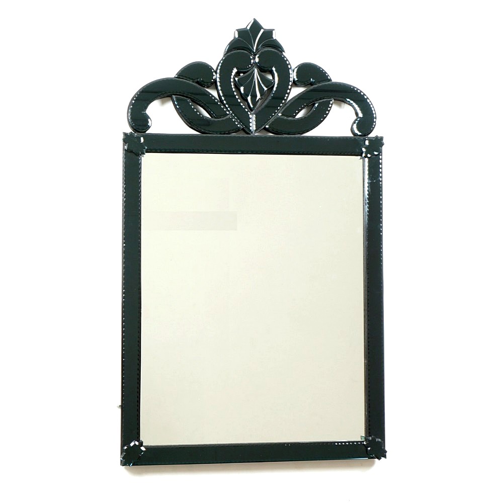 Clean using a soft cloth; keep the Ebony Crest Wall Mirror away from water and abrasive cleaners to maintain its sheen.