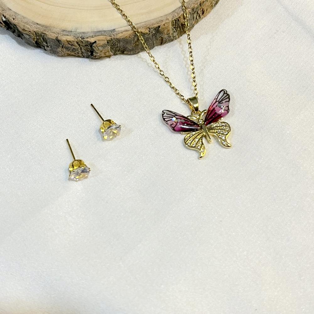 This elegant butterfly necklace set captures lightness, movement, and quiet symbolism. Crafted from stainless steel and finished with refined 18K gold plating, the butterfly motif brings a sense of delicacy while maintaining structural strength. The design feels graceful rather than ornate, allowing the form to speak through balance and polish. A set that blends softness with modern clarity.