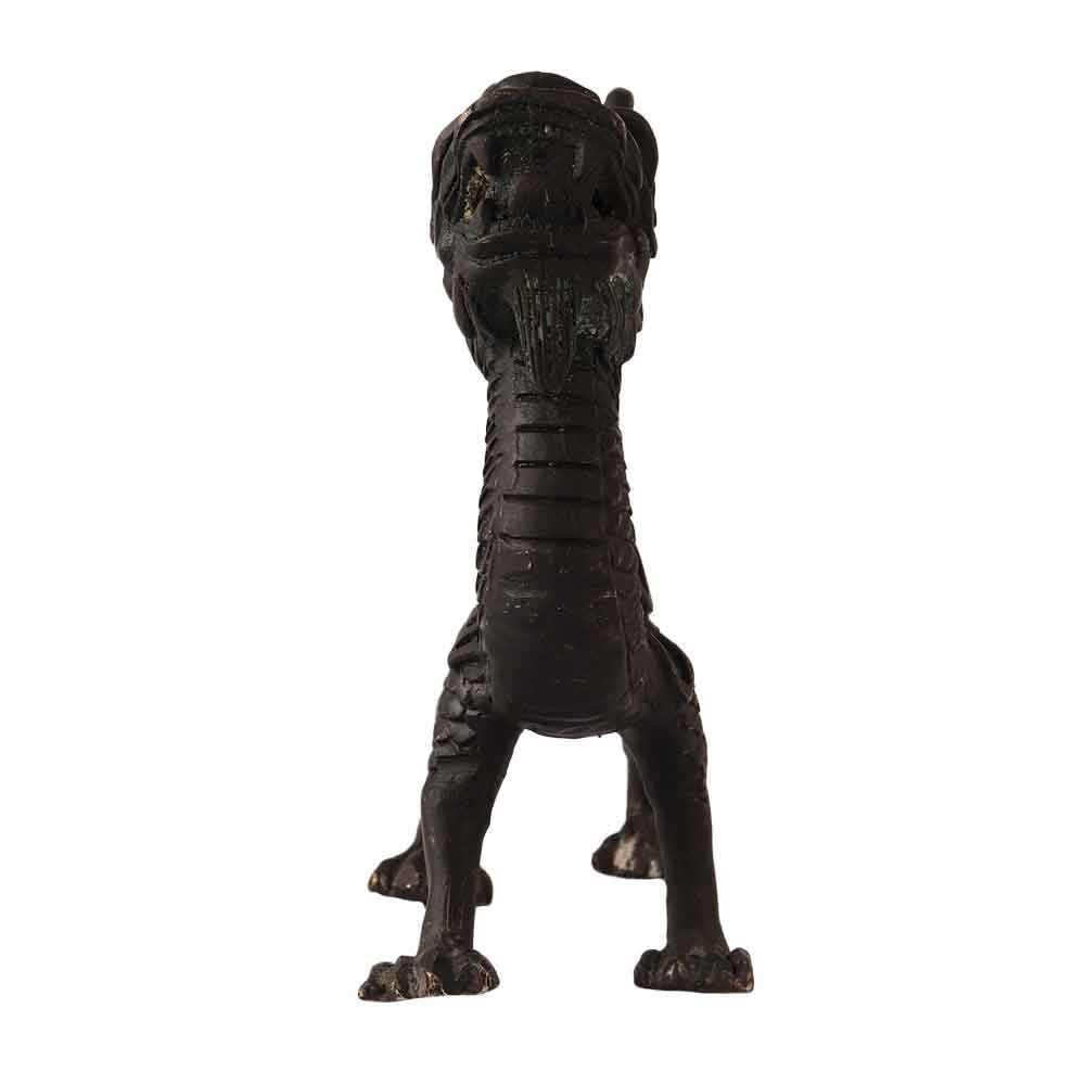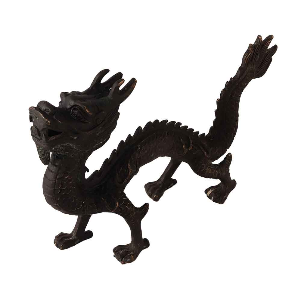 A Chinese dragon or loong or long is a creature in Chinese mythology. This brass statue of Chinese dragon is handmade by skilled workers in Chinese art with elegant black finish. This brass dragon has four legs that hold onto the surface. Its incredible design is attractive and sets it apart from other dragon statues. According to Feng Shui, placing the dragon statue at home, office, restaurant or hotel promotes good luck and opportunities in life. Display this incredible piece of decoration in your hotel to attract your customers. An ideal gift for special and festive occasions for your loved ones.