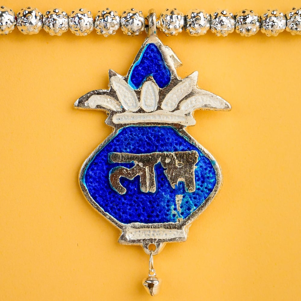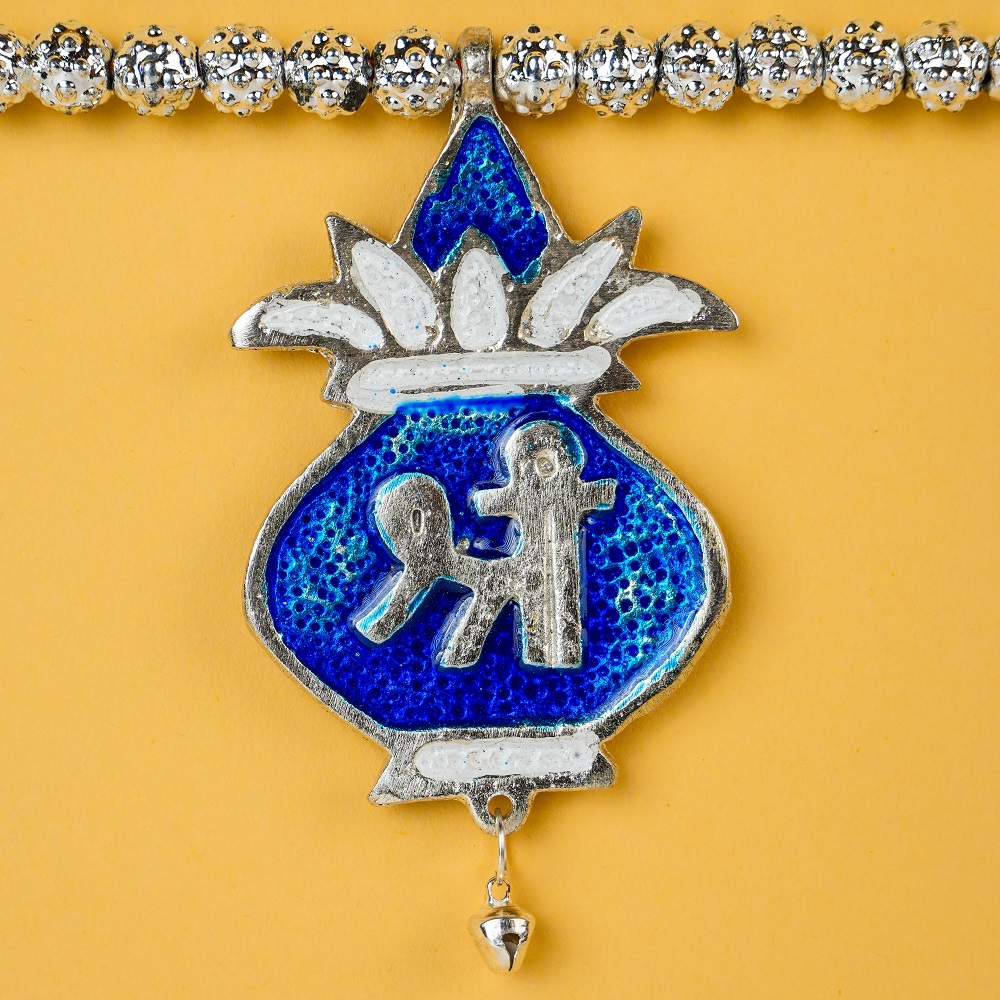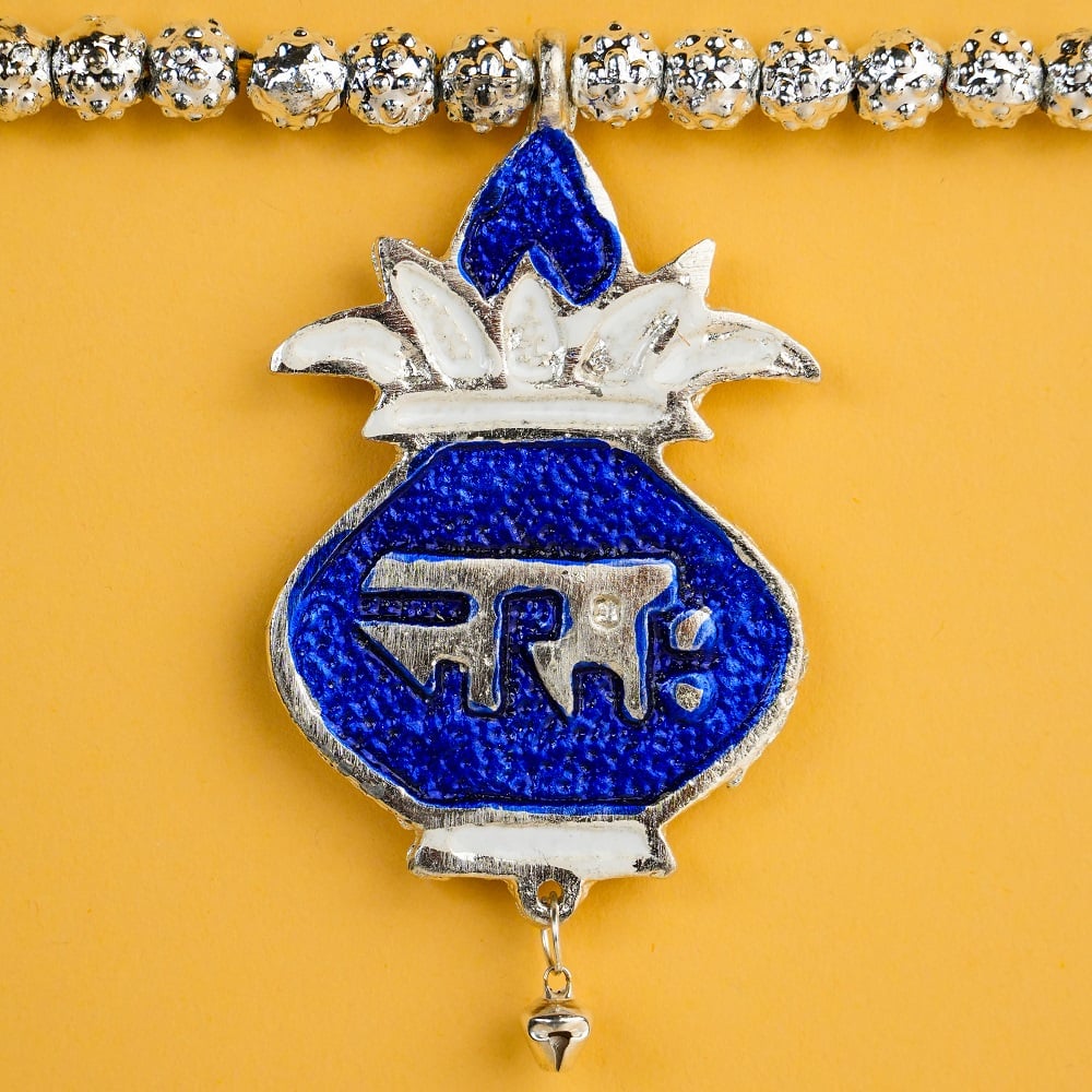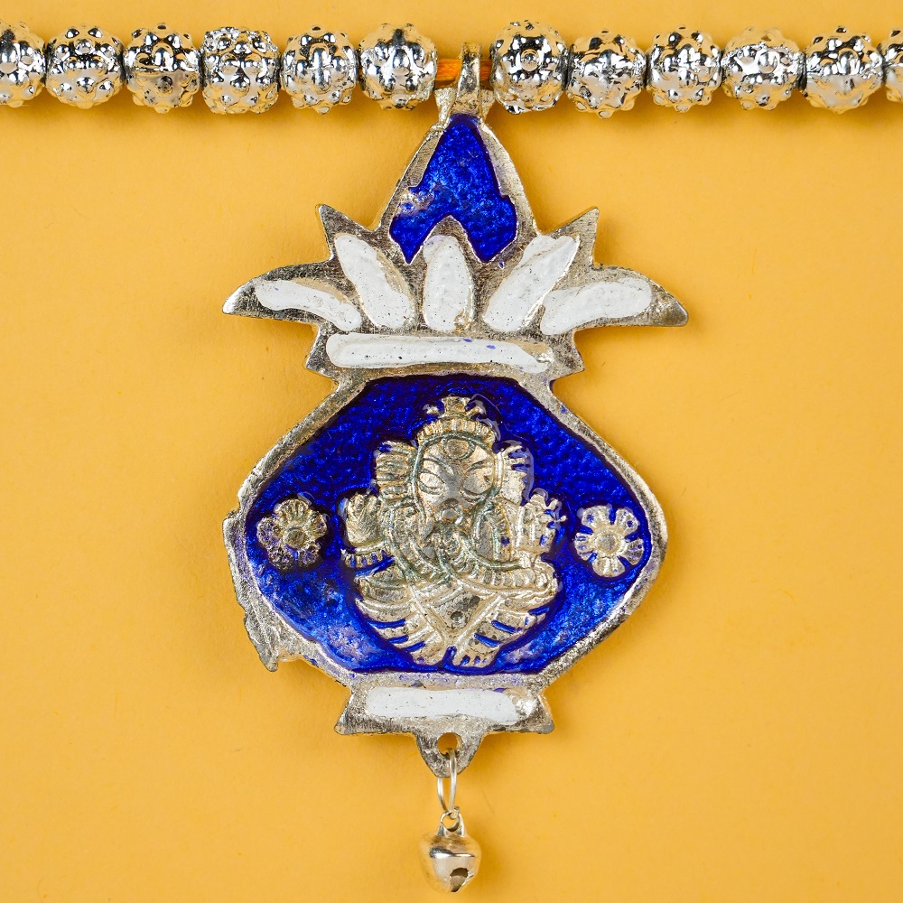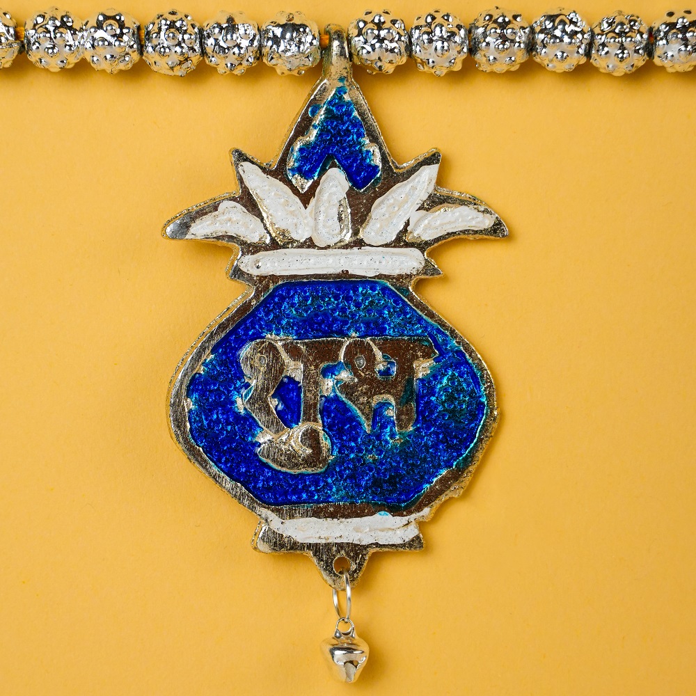 Enhance your doorway with this beautiful blue aluminum toran, crafted with intricate detailing and traditional Indian motifs. Each charm is adorned with auspicious symbols and leaf patterns, adding a festive and welcoming touch to your home décor. Made from durable lightweight aluminum, this toran combines elegance with longevity — perfect for daily use or festive occasions.