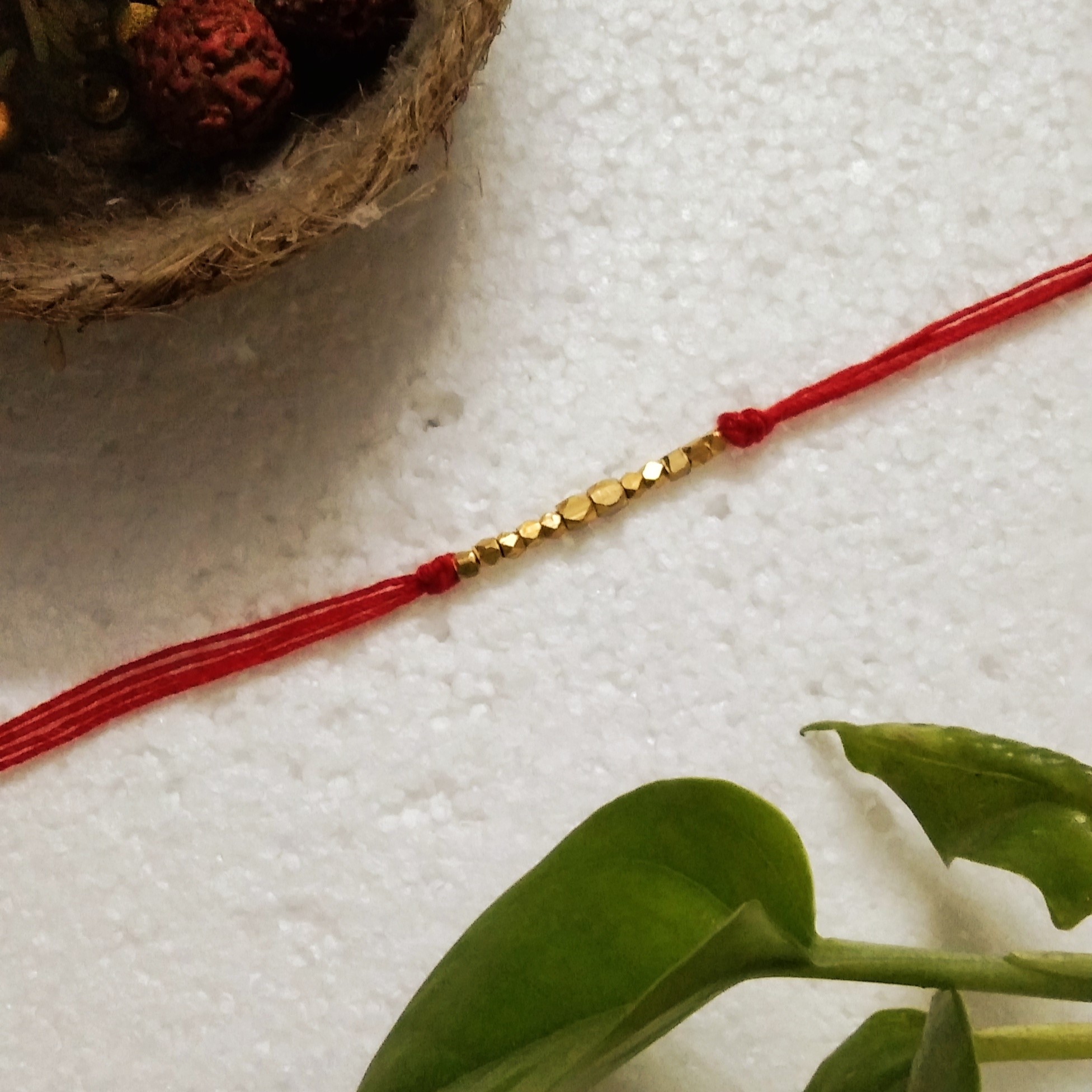 Celebrate sibling love with a rakhi that pairs timeless materials like brass beads with modern design, making your festival extra meaningful.