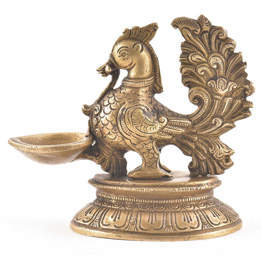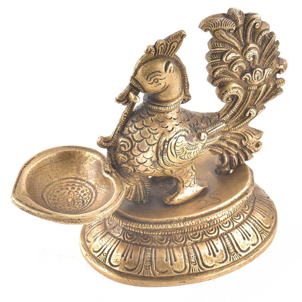 Elegant Brass Diya With Peacock Figurine