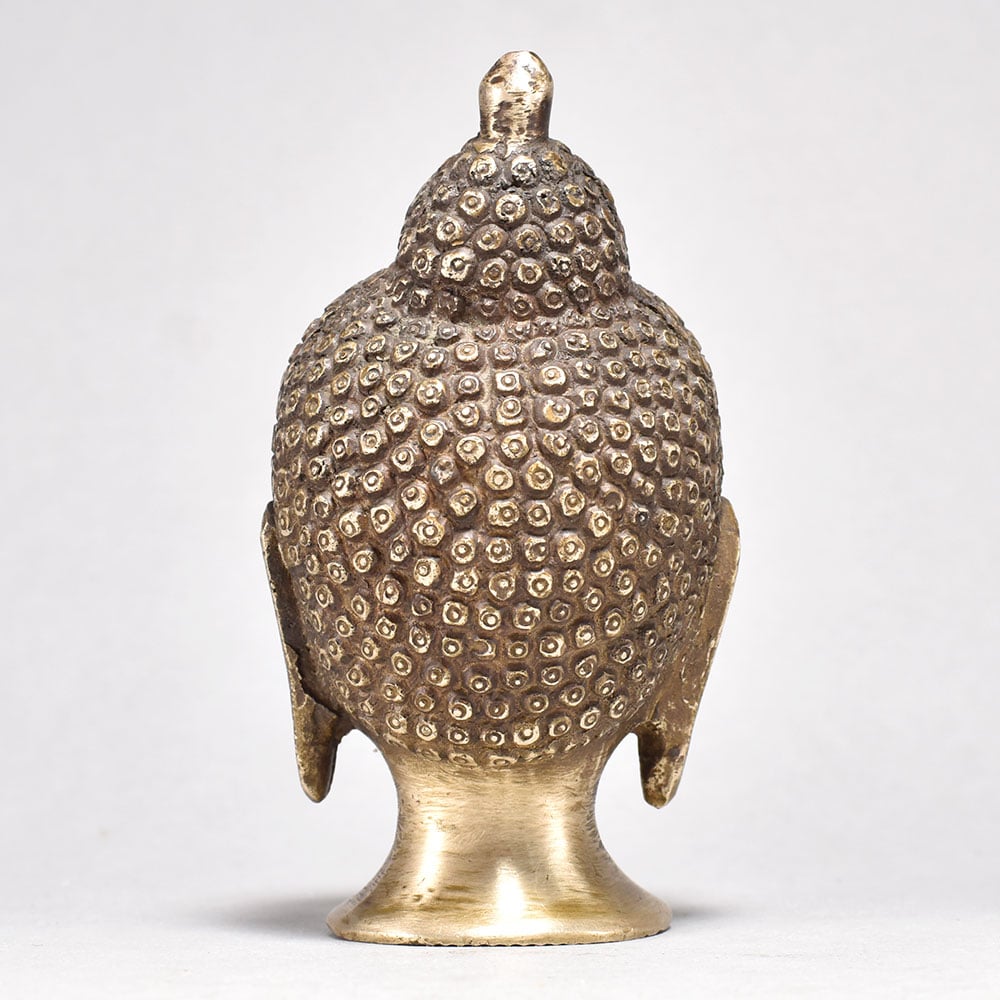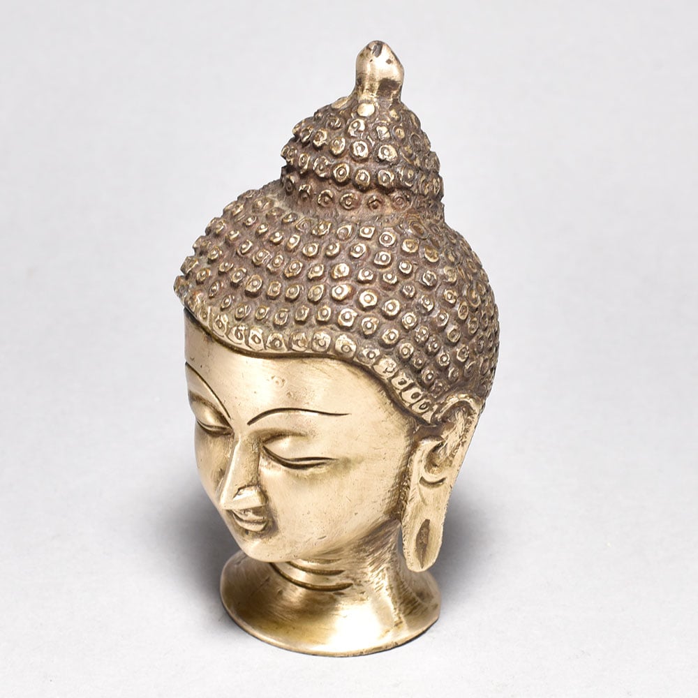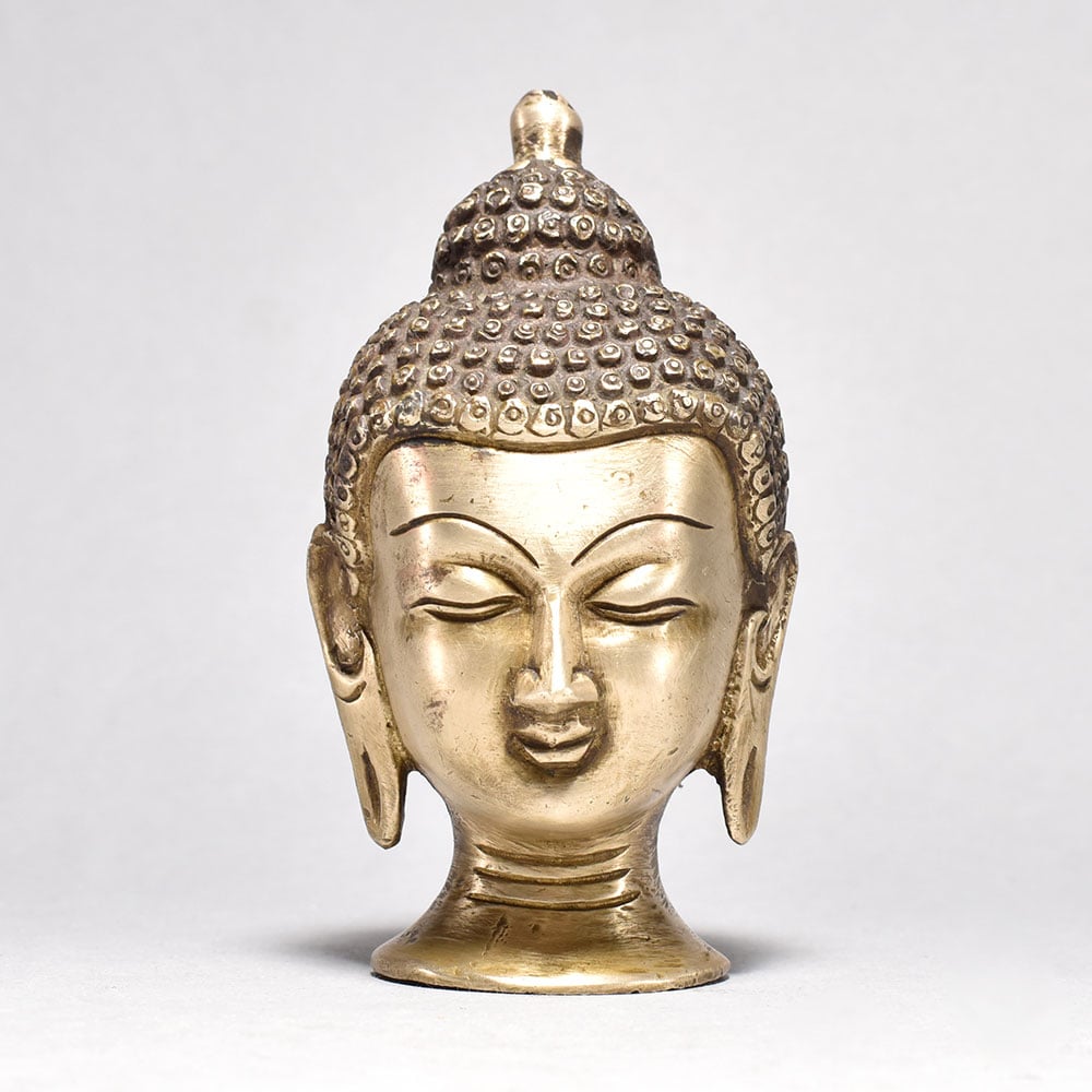 Bring the serene wisdom of the Buddha into your home with this stunning brass sculpture.Imbue your space with a sense of peace and contemplation. This Lord Buddha Head is a work of fine art that commands attention, reminding us to slow down and find inner calm amidst the chaos of everyday life. Whether placed on a shelf, table, or altar, this brass sculpture will infuse your surroundings with the enlightened energy of the Buddha. Handcrafted in the Tibetan tradition using premium metal Intricate carvings in traditional Tibetan script Produces a soothing, resonant tone perfect for sound therapy Helps induce deep relaxation and mindfulnessHandcrafted from premium brass Captures the tranquil expression of the Buddha Elegant, timeless design perfect for display Makes a thoughtful, meaningful gift This unique handcrafted piece is a testament to traditional artistry, blending functionality with beauty and making it a treasured collectible for years to come.