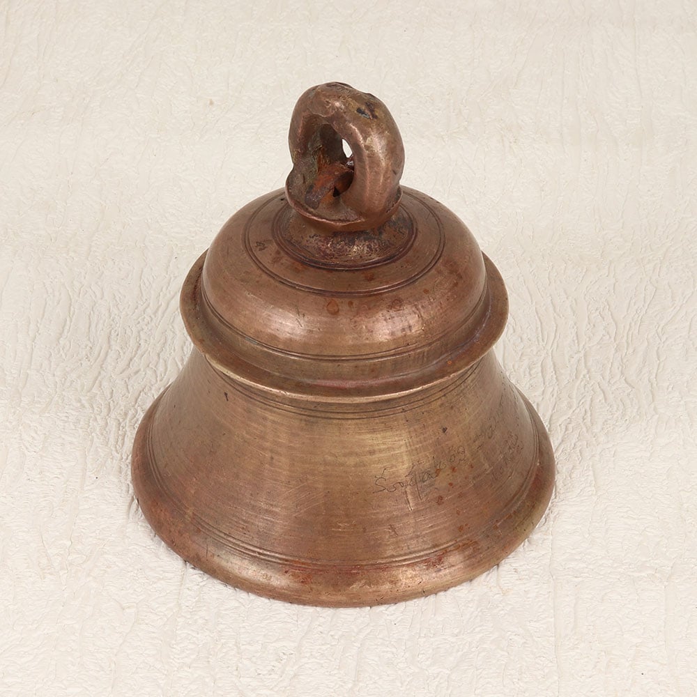 Buy a Vintage Bell Metal Temple Bell online and get a hassle free delivery right at your doorstep. Handcrafted by skilled artisans from Central India, this exquisite piece embodies centuries of tradition and craftsmanship. The bell is meticulously fashioned from high-quality bell metal, ensuring durability and a resonant, melodic chime that echoes through sacred spaces. Its antique brown finish adds a touch of nostalgia and authenticity, giving it a rustic allure that complements any traditional or vintage decor. The temple bell features a convenient loop for easy hanging, making it a versatile addition to your home, office, restaurant, hotel, or cafe prayer room. Imbued with cultural significance, it serves not only as a religious artefact but also as a stunning decorative element, seamlessly blending spirituality with aesthetic appeal. This handmade masterpiece transcends its utilitarian purpose, making it a cherished addition to any vintage collection. Share the gift of divine resonance and cultural heritage by presenting this bell to your loved ones on special, festive, or auspicious occasions.