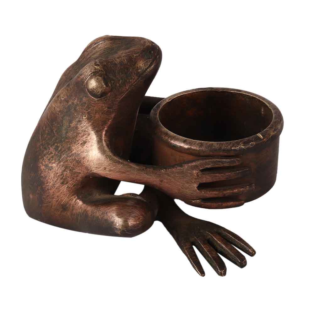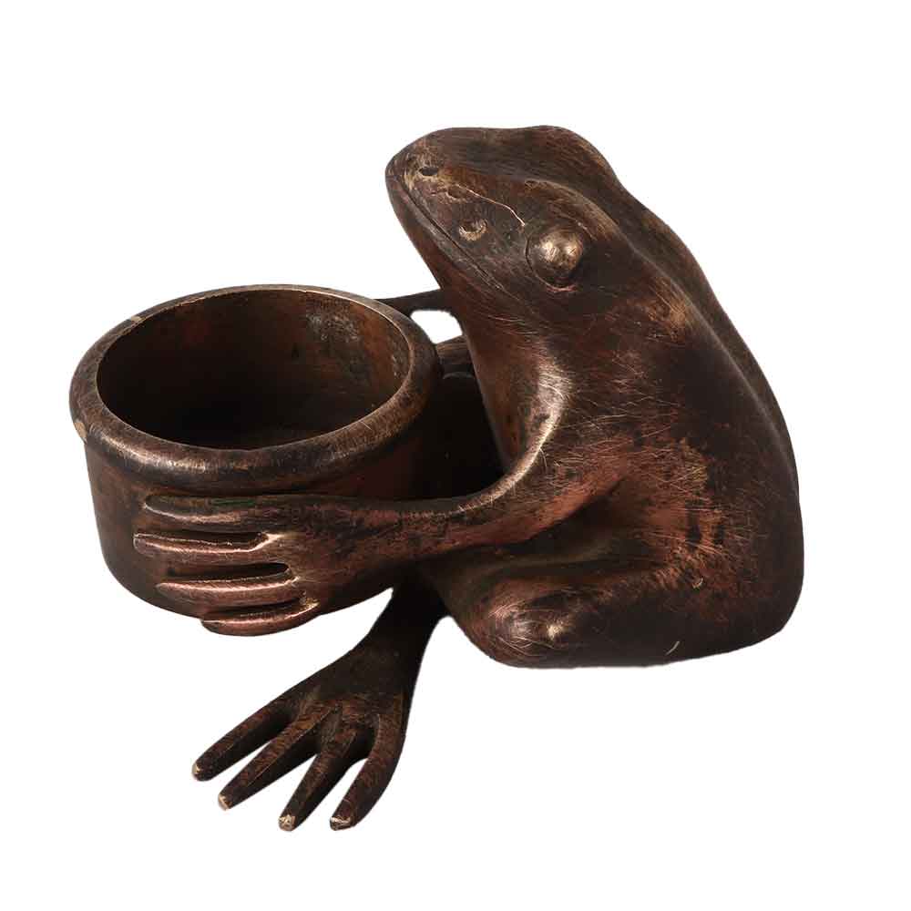 • Elegant Brown Brass Frog with Pot in English Art