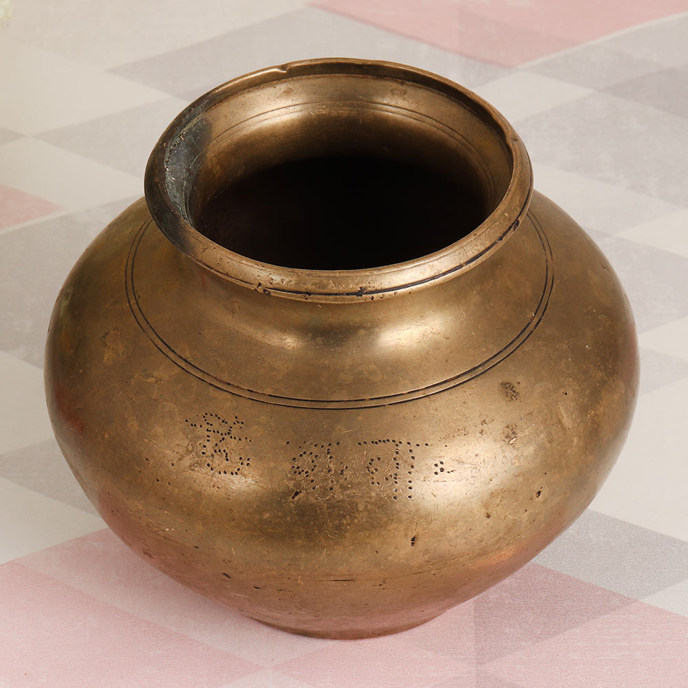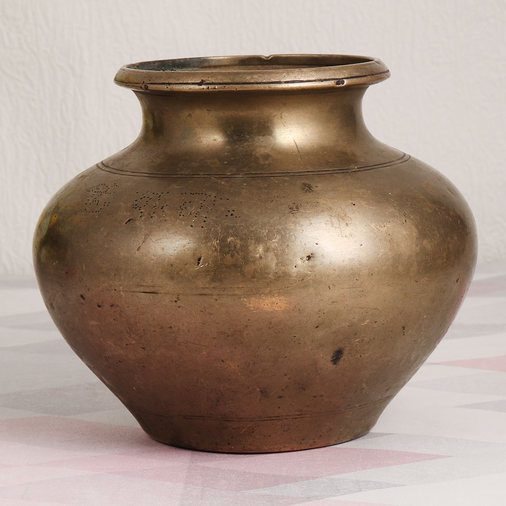 Buy a vintage brass holy water pot online which has an antique brown finish and get a hassle free delivery at your doorstep. Handcrafted by skilled Indian artisans well-versed in South Indian artistry, this piece is a testament to their expertise and dedication. Crafted from high-quality brass, it exudes an aura of timeless beauty and authenticity. This versatile vessel can grace your home, office, restaurant, hotel, cafe, or shop with its elegant presence. Its dual functionality allows it to serve as both an indoor flower pot and a sacred container for holy water during havan, rituals, and other auspicious occasions. Placing this artefact in the north direction of your room is believed to infuse your space with positive energy, making it a symbolic addition to your décor. It's also a valuable item for vintage collectors and a thoughtful gift for loved ones on special, festive, or auspicious occasions.