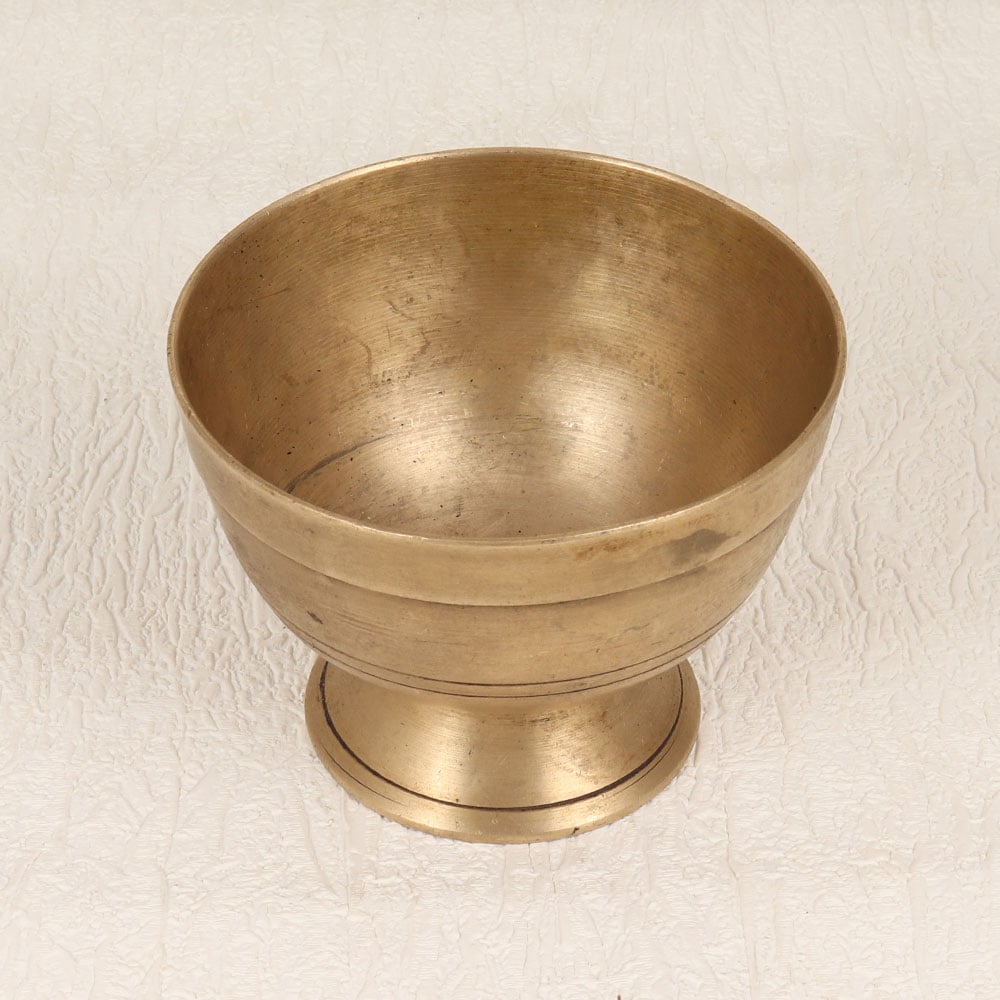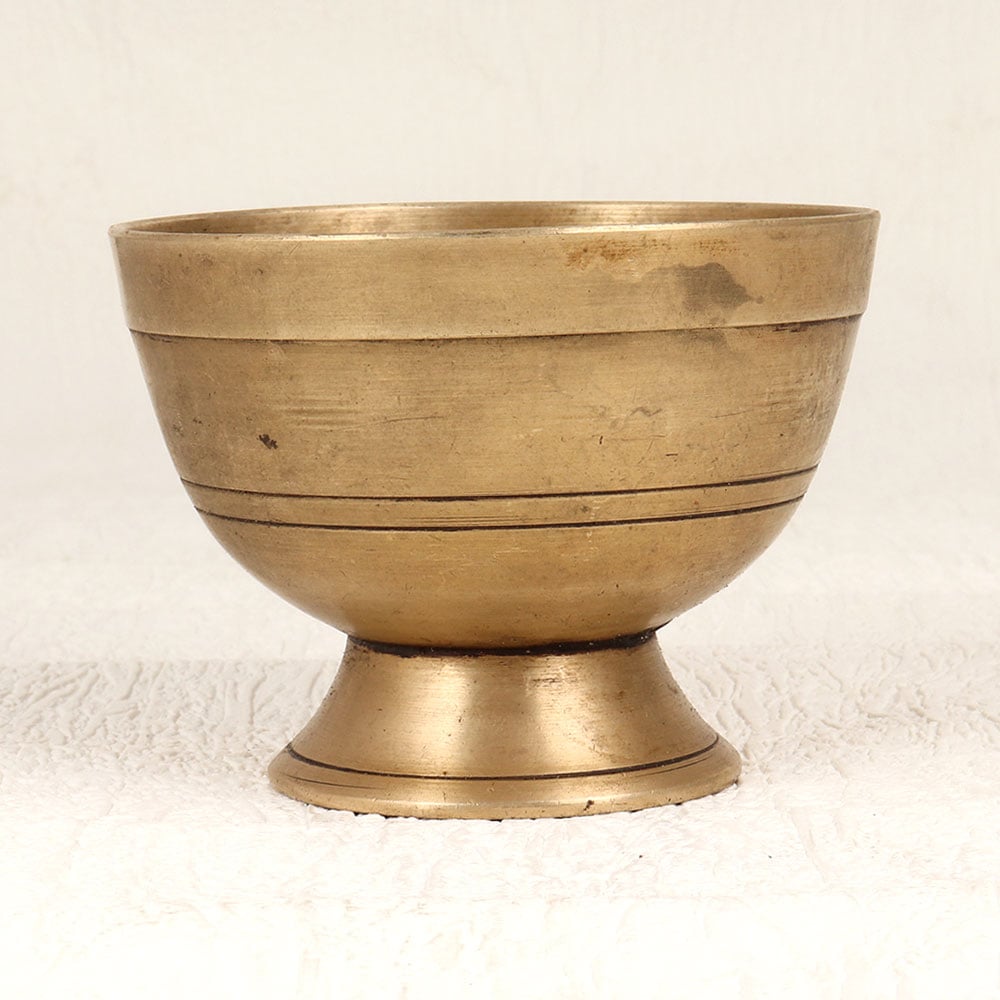Enhance your spiritual and aesthetic experience with our Vintage Brass Kumkum Bowl with Base Stand, a timeless piece meticulously crafted by highly talented Indian artisans in the revered South Indian Art tradition. Fashioned from high-quality brass, this exquisite bowl features an antique brown finish that adds an air of antiquity and charm. Designed for use during prayers, rituals, and havans, the bowl gracefully holds kumkum tilak, enhancing the sanctity of your sacred moments. Its versatile appeal extends beyond the realm of spirituality, making it a splendid addition to your home, office, restaurant, hotel, or cafe prayer room. The handmade craftsmanship ensures each piece is unique, offering a touch of tradition and elegance to any space. This vintage masterpiece not only serves a functional purpose but also makes for a captivating decor item, perfect for those who appreciate the beauty of timeless art. It's an ideal addition to any vintage collection and a thoughtful gift for your loved ones on special, festive, or auspicious occasions.