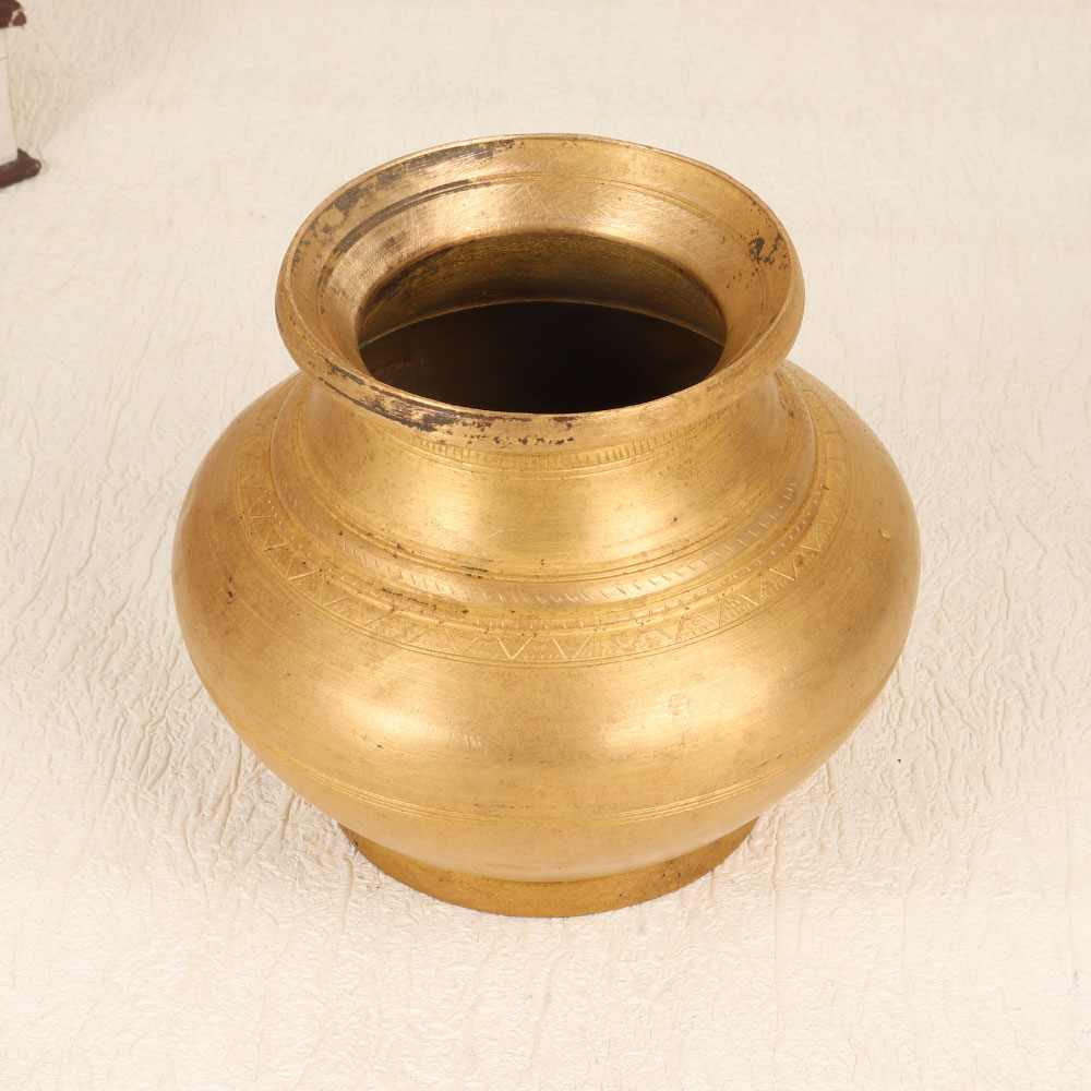 Immerse your sacred rituals in timeless elegance with this exquisite Vintage Brass Holy Water Pot. Handcrafted by professional Indian artisans from Gujarat, this piece showcases the rich heritage of traditional craftsmanship. Made from high-quality brass, the pot features an antique brown finish that exudes an aura of antiquity and spiritual significance. Perfect for rituals, havans, and offering water to the Shivling in temples, this holy water pot adds a touch of divine grace to your spiritual practices. Its versatile design allows it to be seamlessly integrated into various settings, making it a captivating addition to your home, office, restaurant, hotel, or cafe. The pot's aesthetic allure also makes it a remarkable decorative piece, enhancing the ambiance with its vintage charm. As a thoughtful gift, this handcrafted masterpiece is ideal for presenting to your loved ones on special, festive, or auspicious occasions.