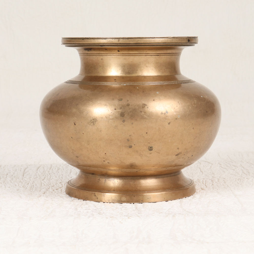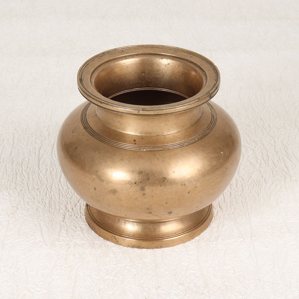 Adorn your spiritual space with our exquisite Vintage Brass Holy Water Pot that is a testament to the craftsmanship of highly skilled Indian artisans in the revered South Indian Art tradition. Handmade from premium brass, this pot features an enchanting antique brown finish that exudes timeless charm. Designed to hold holy water during prayers, rituals, and havans, it seamlessly blends spirituality with aesthetic appeal. This versatile artefact transcends its sacred purpose and can be a captivating addition to your home, office, restaurant, hotel, or cafe prayer room. Its multipurpose design also allows it to be used as an indoor flower pot, adding a touch of divine elegance to any space. A must-have for collectors of vintage treasures, this holy water pot is a timeless piece that reflects cultural richness. Moreover, it serves as an ideal gift for your loved ones on special, festive, or auspicious occasions, symbolizing blessings, tradition, and the artistry of Indian heritage.
