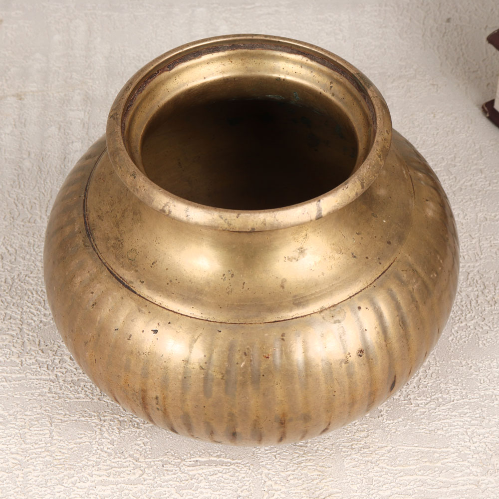 Embrace the divine charm of tradition with our Vintage Brass Holy Water Pot, a sacred Lota meticulously handcrafted by highly talented Indian artisans from Gujarat. Made from high-quality brass, this holy pot boasts an antique brown finish, exuding an aura of timeless elegance. Ideal for havans, auspicious occasions, or rituals, it adds a touch of spirituality to your space. This versatile piece seamlessly transitions from religious ceremonies to everyday decor. Adorn your home, office, restaurant, hotel, or cafe with its antique allure, creating an ambiance steeped in cultural richness. Beyond its sacred purpose, this pot transforms into an indoor flower vase, infusing your surroundings with natural beauty. A true collector's item, this Vintage Brass Holy Water Pot is a unique addition to your vintage treasures. Thoughtful and meaningful, it also makes for an extraordinary gift for loved ones on special, festive, or auspicious occasions.