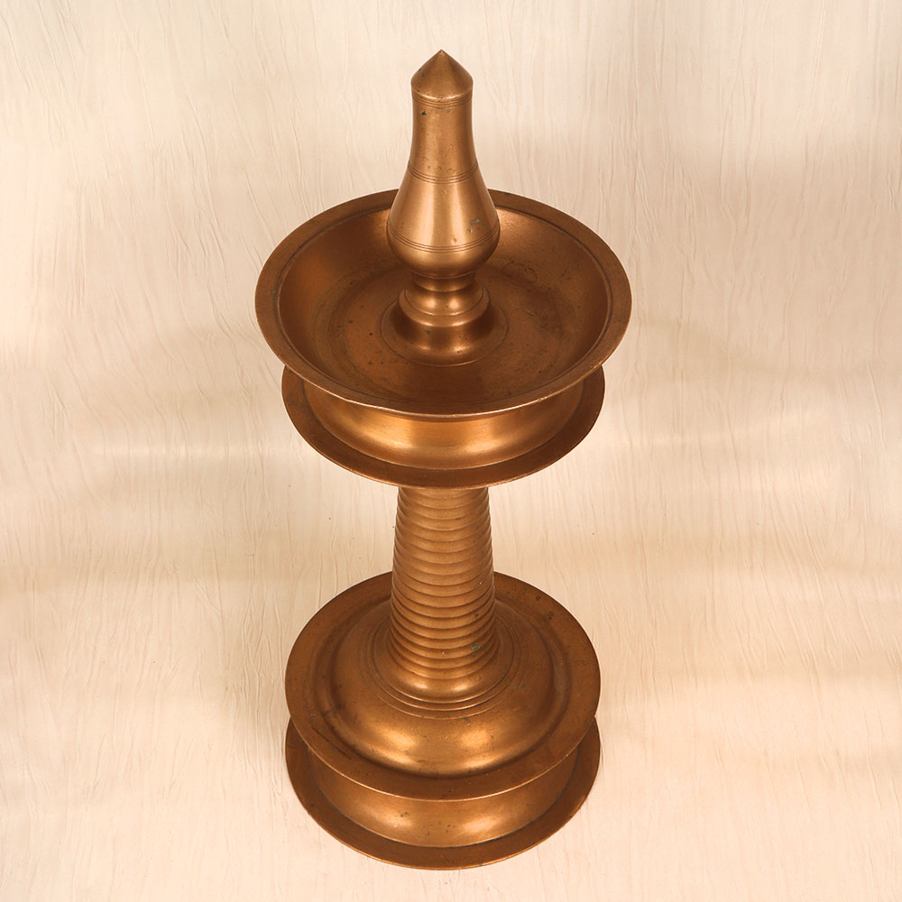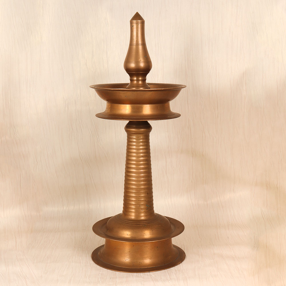 Illuminate your world with the timeless glow of a vintage brass oil lamp. Crafted in the rich tradition of South Indian art, this captivating lamp will transport you to another era with its enchanting ambiance. Imagine the flickering flame casting a gentle, golden light across your room, evoking the charm of bygone eras. This vintage oil lamp isn't just a functional piece - it's a work of art that will elevate the aesthetic of your home. Whether you use it as a centerpiece on your coffee table or a calming accent in your meditation nook, its mesmerizing glow is sure to captivate all who experience it. The perfect blend of form and function, this heirloom-quality lamp is designed to last for generations. Crafted with meticulous attention to detail, it's a timeless treasure that will infuse your space with the rich cultural heritage of South India. Bring the magic of a bygone era into your modern home and let the warm embrace of this vintage brass oil lamp transport you to a world of tranquility and wonder.