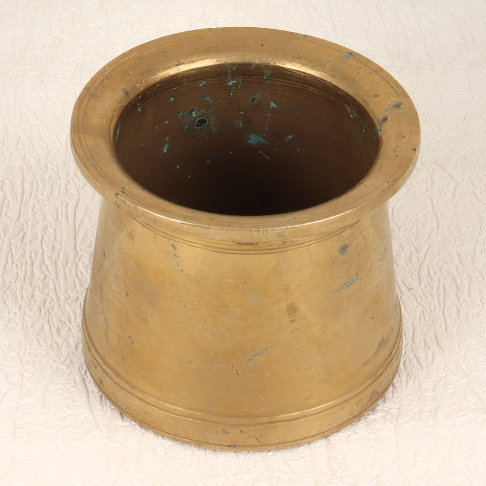 Enhance your spiritual space with the exquisite Vintage Brass Panchpatra Holy Pot that is a testament to the rich traditions of South Indian Art. Meticulously handcrafted by talented Indian artisans, this sacred pot is made from high-quality brass, boasting an antique brown finish that adds a touch of timeless elegance. Versatile in its purpose, the Panchpatra is an essential element for prayer, rituals, and havans, enhancing the sacred ambiance of your home, office, restaurant, hotel, or cafe. Beyond its spiritual significance, this holy pot doubles as a charming decorative piece, seamlessly blending antiquity with contemporary aesthetics. Its multifunctional design allows it to serve as a unique flower pot, further contributing to its appeal. Ideal for collectors of vintage treasures, this Panchpatra becomes a distinguished addition to your curated ensemble. Additionally, it makes for a thoughtful and meaningful gift for your loved ones on special, festive, or auspicious occasions, symbolizing the enduring beauty of tradition and spirituality.