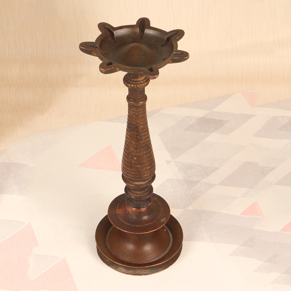 Rediscover the captivating allure of old-world charm with our exquisite Vintage Brass Oil Lamp. Crafted with meticulous attention to detail, this stunning lamp is a testament to the rich cultural heritage of South India Art. Imagine the warm, flickering glow of this oil lamp casting a tranquil ambiance throughout your living space. More than just a functional lighting source, this lamp is a work of art that will transport you to a bygone era, evoking feelings of nostalgia and timeless elegance. Whether you're seeking to create a serene meditation corner, add a touch of sophistication to your living room, or find the perfect housewarming gift, our Vintage Brass Oil Lamp is the answer. Its versatile design seamlessly blends with a variety of interior styles, from rustic farmhouse to modern minimalist. Experience the mesmerizing allure of this captivating piece and let it become the centerpiece that elevates your space.
