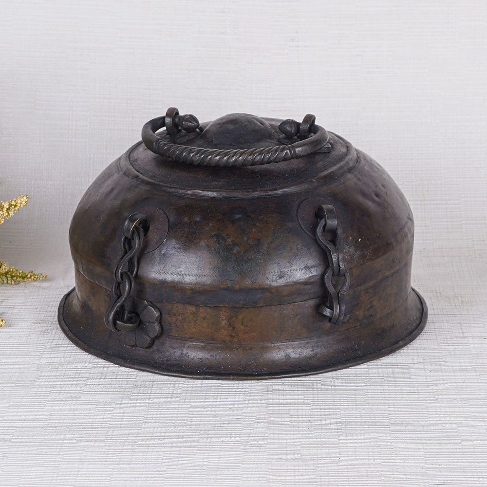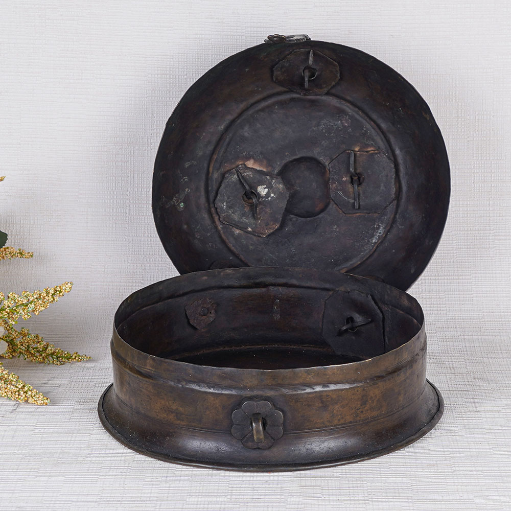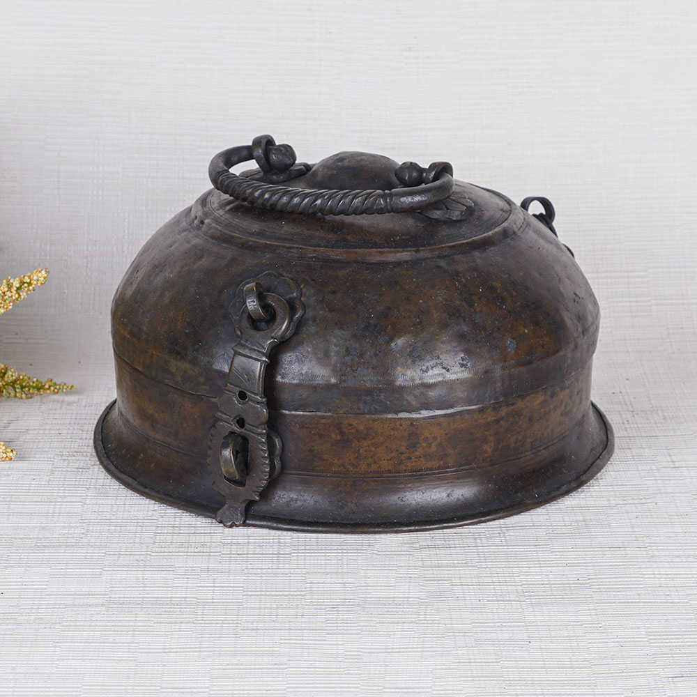 Buy an elegant dark brown jewelry box, a true testament to the craftsmanship of skilled Indian artisans. Meticulously handcrafted using traditional methods, this jewelry box showcases the artistry and attention to detail that defines Indian craftsmanship. Fashioned from high-quality brass with a rich dark brown finish, it exudes elegance and sophistication. Originally designed to store precious items and jewelry, this jewelry box has seamlessly transitioned into a versatile decorative piece for modern spaces. Its plain design, enhanced by a latch for secure locking and a convenient handle on top, allows for easy storage and portability. Whether used as a statement piece for home, office, restaurant, or hotel decor, this jewelry box adds a touch of timeless beauty. Its potential for display in exhibitions or museums further underscores its cultural significance. Additionally, this antique brass jewelry box makes a perfect gift for family, friends, or relatives on special occasions. With its practicality and aesthetic appeal, it provides a charming storage solution for necklaces and other cherished possessions.