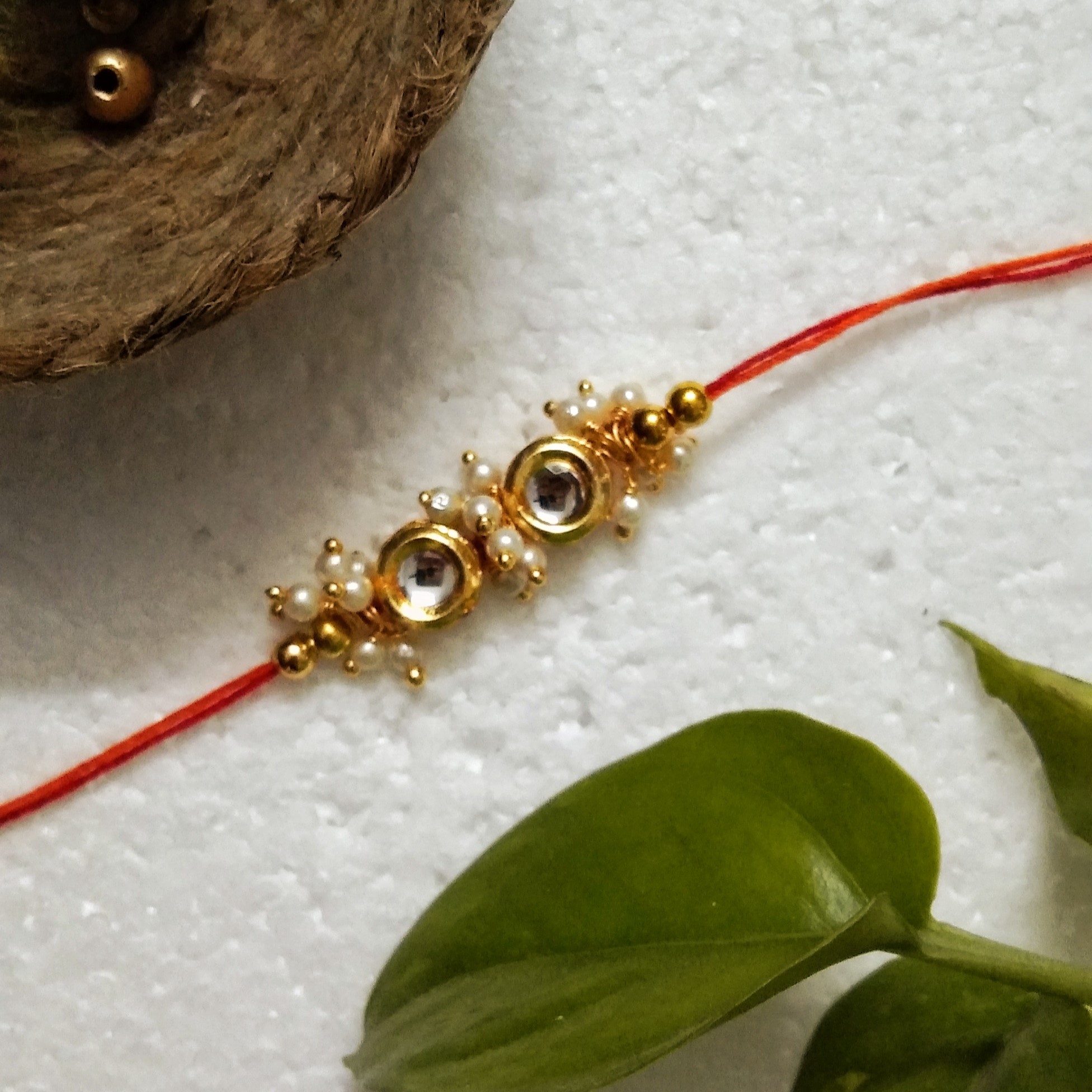 Handmade with care, this rakhi features kundan/acrylic beads for a look that's both classic and eye-catching—a beautiful way to mark the festival.