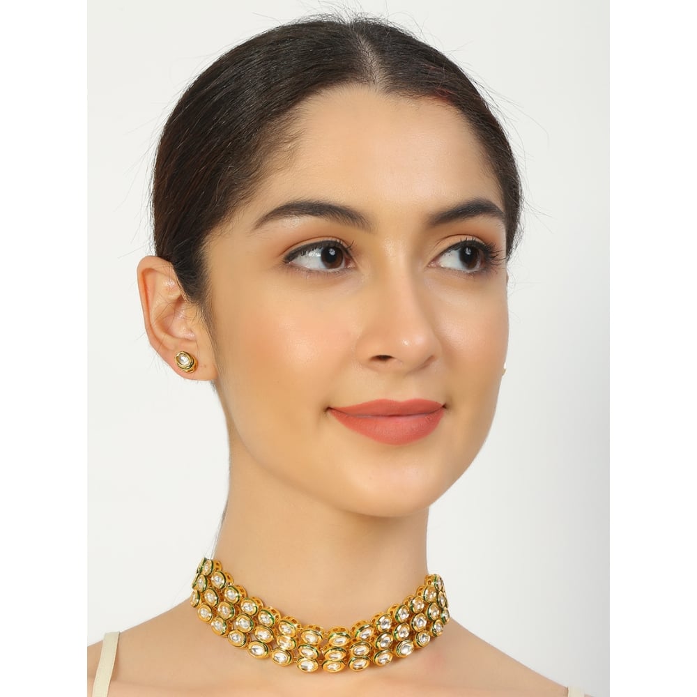 Elevate refined occasions with our Elegant Oval Kundan Choker Necklace Set, thoughtfully designed with traditional kundan stones arranged in a graceful oval pattern. This sleek choker pairs understated luxury with heritage craftsmanship, making it ideal for weddings, festive gatherings, and premium gifting. Packed & quality-checked by Indianshelf.