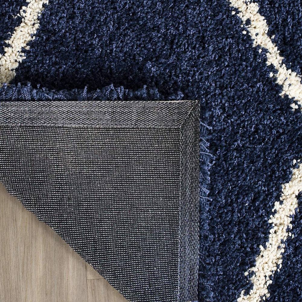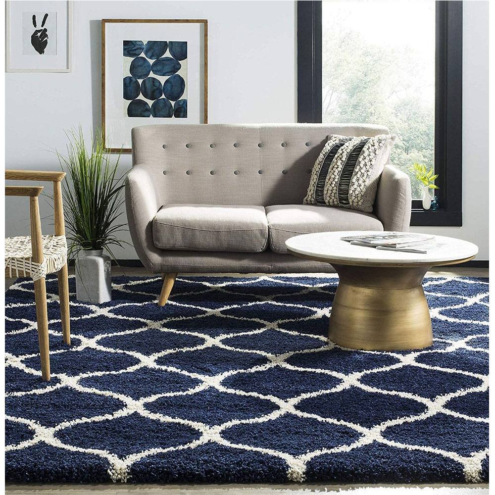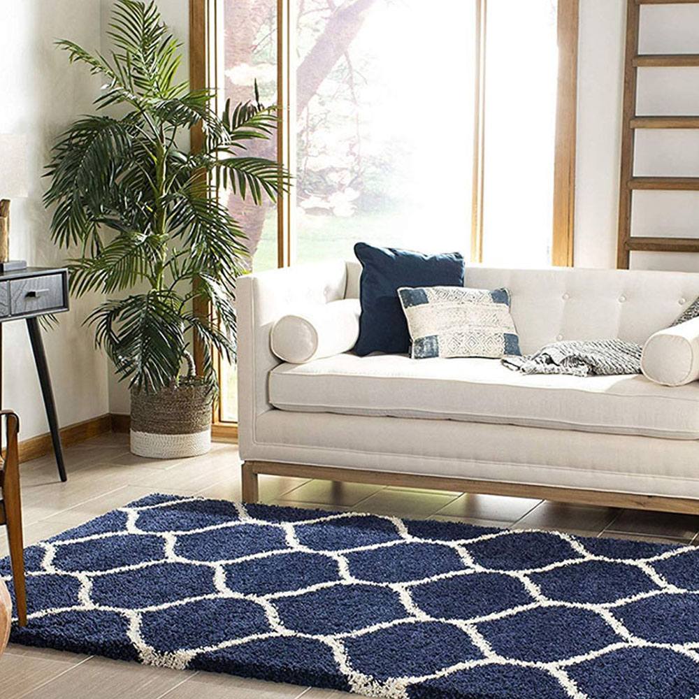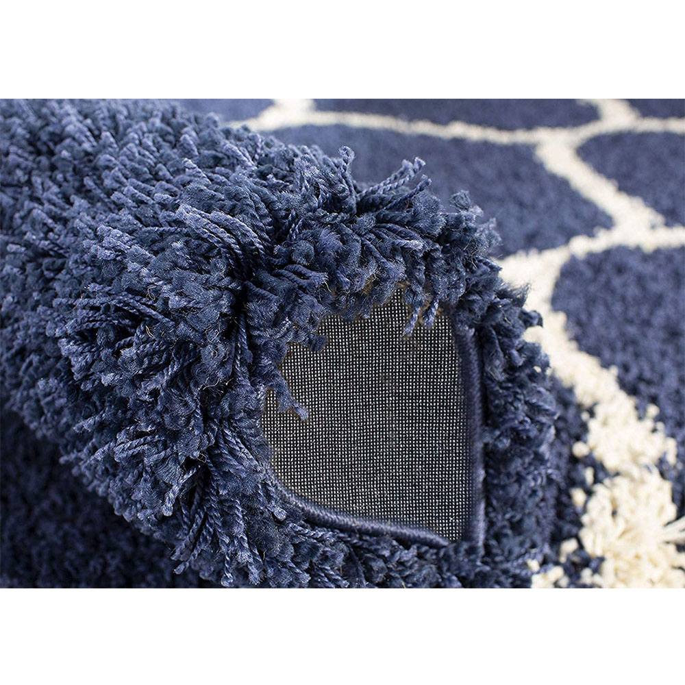 This Navy Blue and Ivory shaggy rug features a timeless lattice pattern, handcrafted from soft microfiber to bring both comfort and elegance to your living space. Its soothing color contrast and plush pile make it an ideal addition for modern, bohemian, or classic interiors. Each rug is carefully packed and quality-checked by Indianshelf artisans.