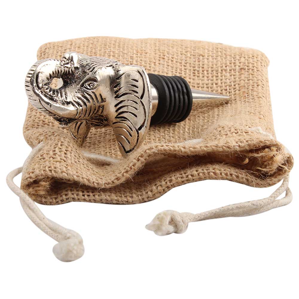 Elephant Aluminium Wine Stopper.zinc alloy wine bottle stopper with attractive Jute Bag Packaging.