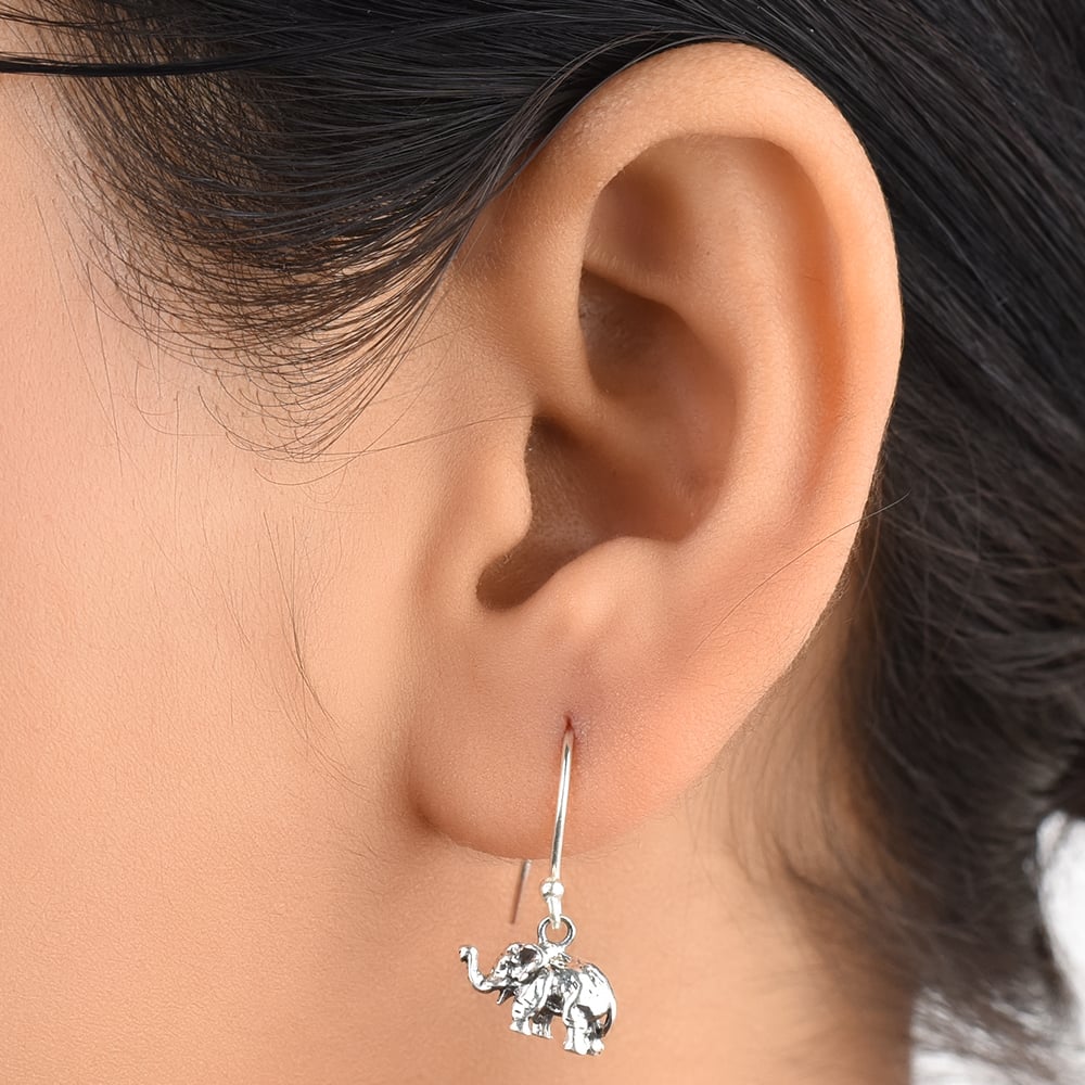 • Elephant Charm 92.5 Sterling Silver Earrings Long Hook For Kids And Women
