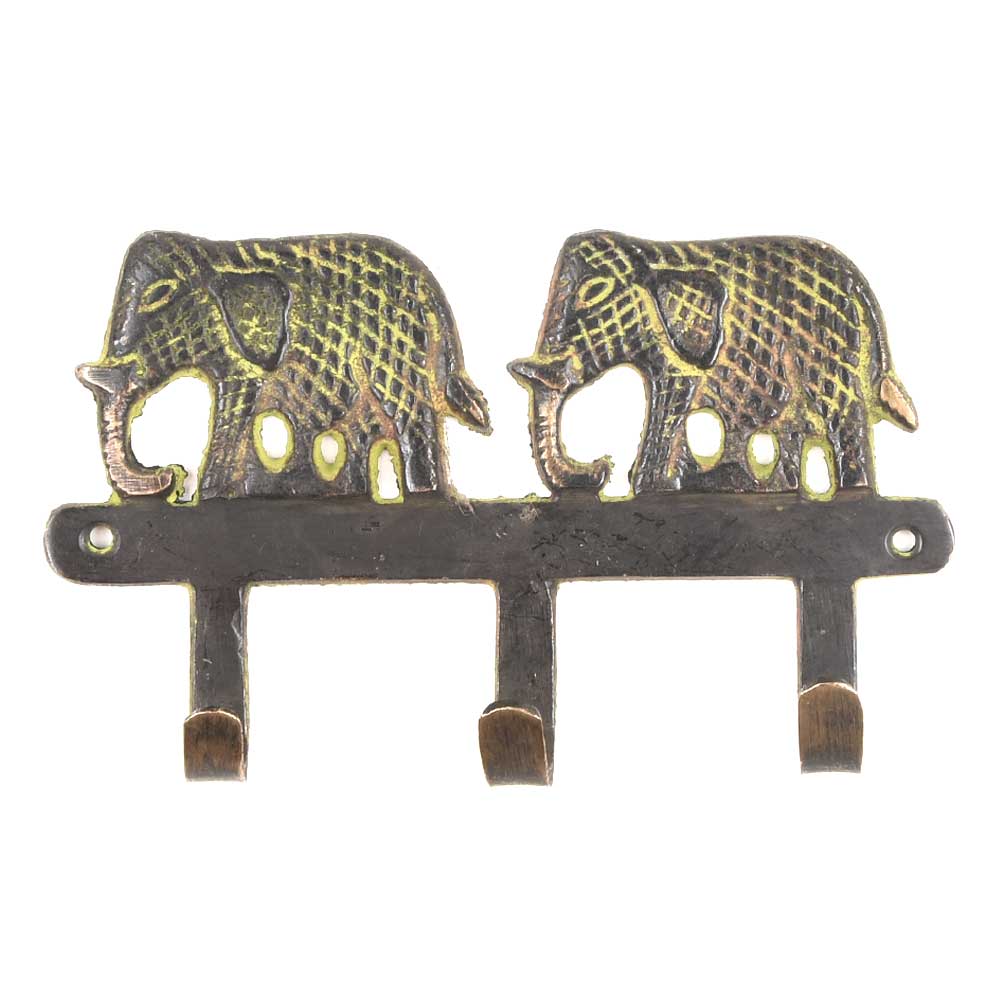 Elephant Design 3 Brass Hooks