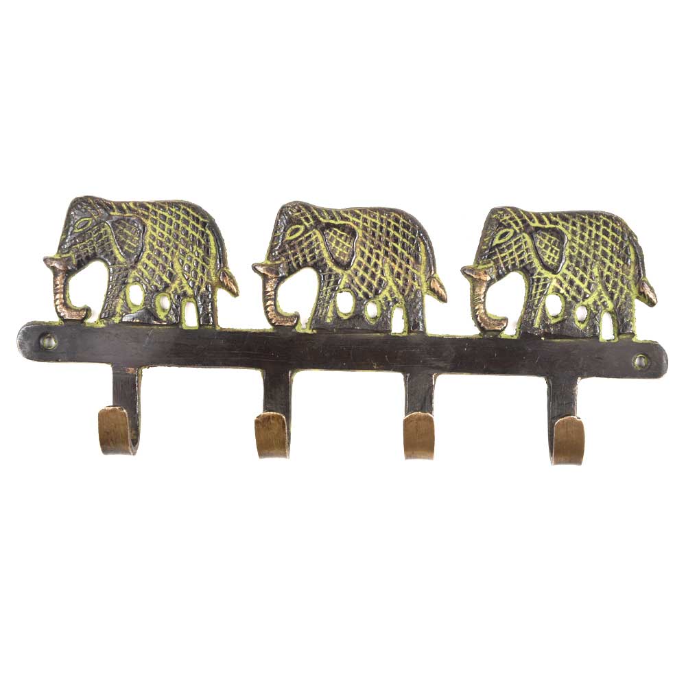 Brass Patina Key Hook Holder Elephant Design Wall Mount Key Hanger Shape of Elephant Looks Very Beautiful on Wall Home Kitchen Decor, Gift for Christmas or Birthday to Your Loved Ones.