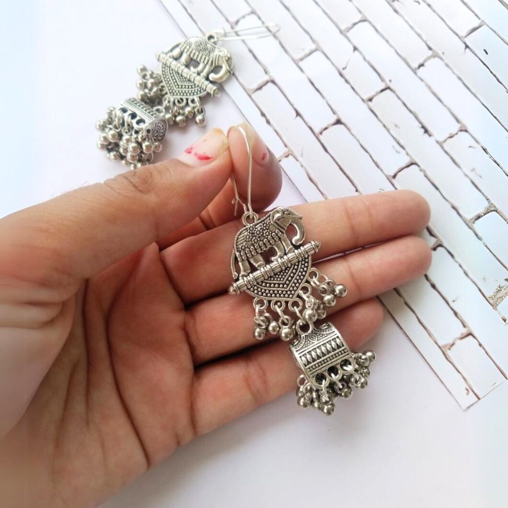 Style these earrings with cotton sarees, handloom kurtas, or boho fusion outfits, and store them in a dry pouch to preserve the oxidised finish.