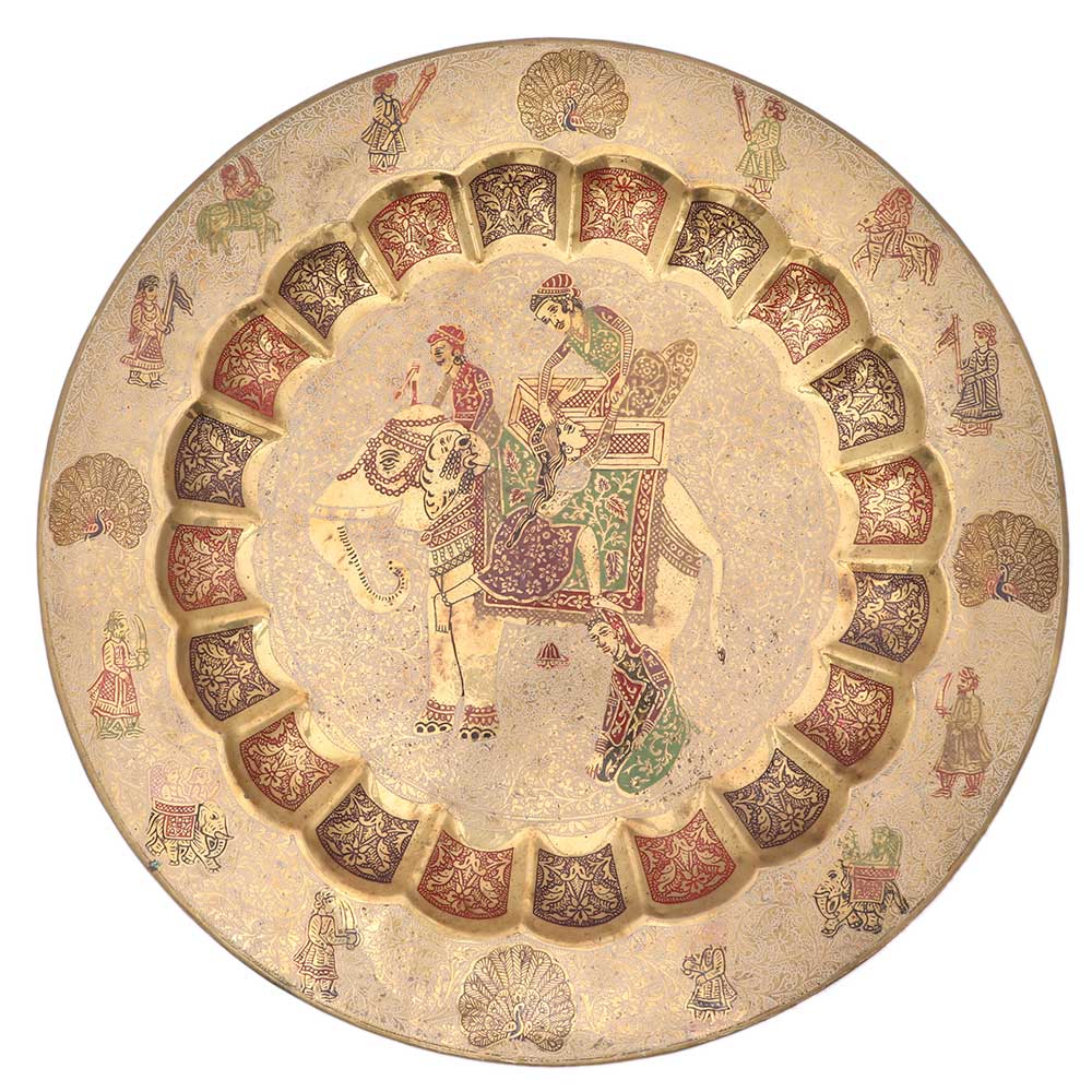 This rare and authentic elephant embellished decorative tray makes for a heritage decor item. It is also a perfect choice for weddings and special occasions. The stunning display of shades and designs makes it a true investment. The elephant embellished decorative tray is a great idea for corporate events and exhibitions. You can opt to use it for front office decor or entryway. It will instantly mesmerize all with its premium appeal.