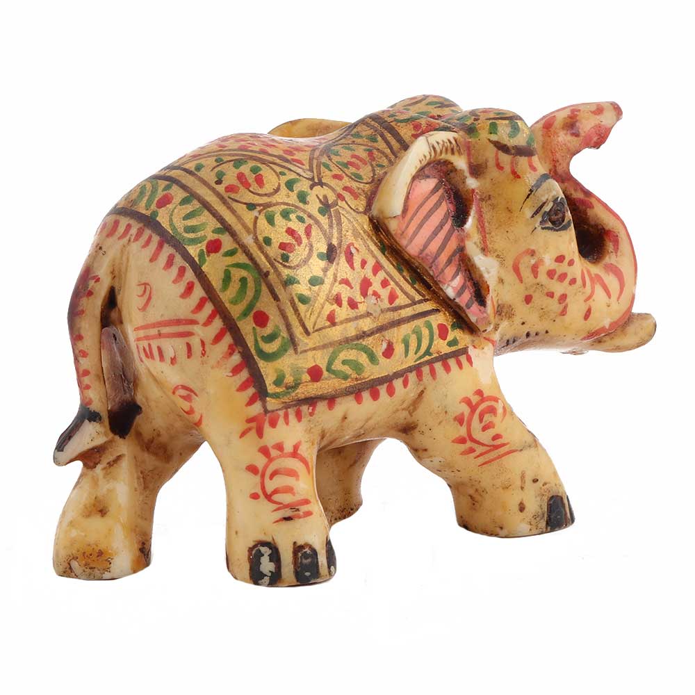The elegant Elephant hand-painted trunk-up figurine takes inspiration from Hindu mythology. It can be easily chosen to enhance your decor as a symbol of power, integrity, and security. The magnificent elephant forms the ride of God's and royal families of India. This Elephant hand-painted trunk up is designed according to Fengshui and Vastu standards to deliver the best results. It also promises good luck and fertility.
