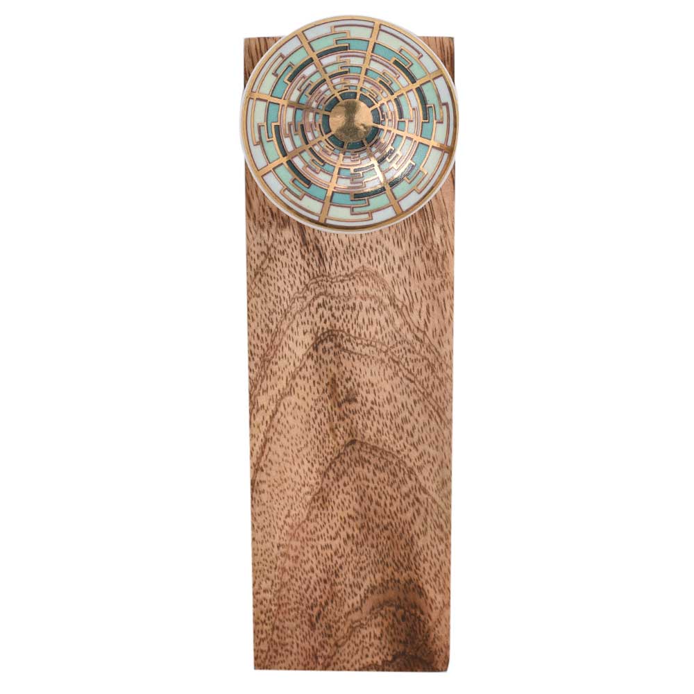 This door stopper is designed to seamlessly blend into your home décor while offering long-lasting durability. The ceramic top is decorated with a rich emerald hue and intricate golden patterns, adding a touch of sophistication to any room. The solid wooden base provides stability and support, ensuring that it effectively keeps doors open or prevents them from damaging walls. Whether you're aiming for a traditional, contemporary, or eclectic look, this door stopper will effortlessly complement your space.
