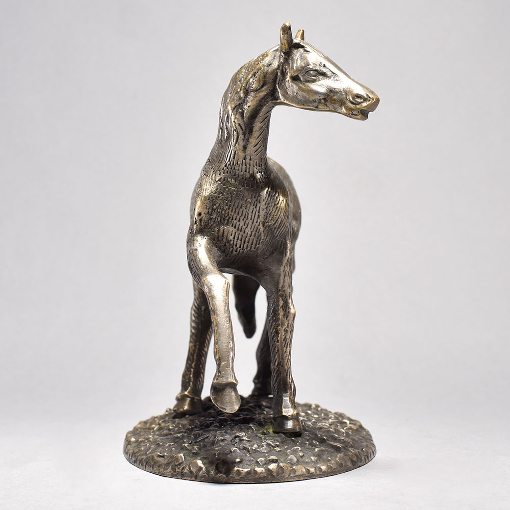 Bring the timeless elegance of vintage English artistry into your home with this exquisite brass horse figurine.This vintage English art horse figurine is a true testament to the unparalleled craftsmanship of a bygone era. Meticulously sculpted from solid brass, every intricate curve and contour has been lovingly rendered to capture the majestic beauty of the equine form. Whether displayed on a mantle, shelf, or side table, this figurine will lend an air of refined sophistication to any space, transporting you to the grand estates of the English countryside. This vintage treasure is the perfect addition for the discerning collector or art enthusiast who appreciates the value of fine, handcrafted pieces that tell a story. Owning this exquisite brass horse figurine is like bringing a piece of English history into your own home, allowing you to bask in the timeless elegance of a bygone era. Handcrafted with meticulous attention to detail Stunning vintage English design Made of durable, high-quality brass Unique, one-of-a-kind piece