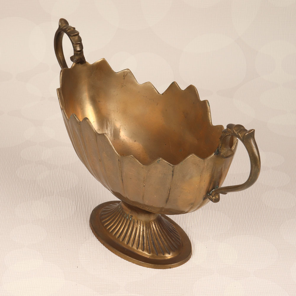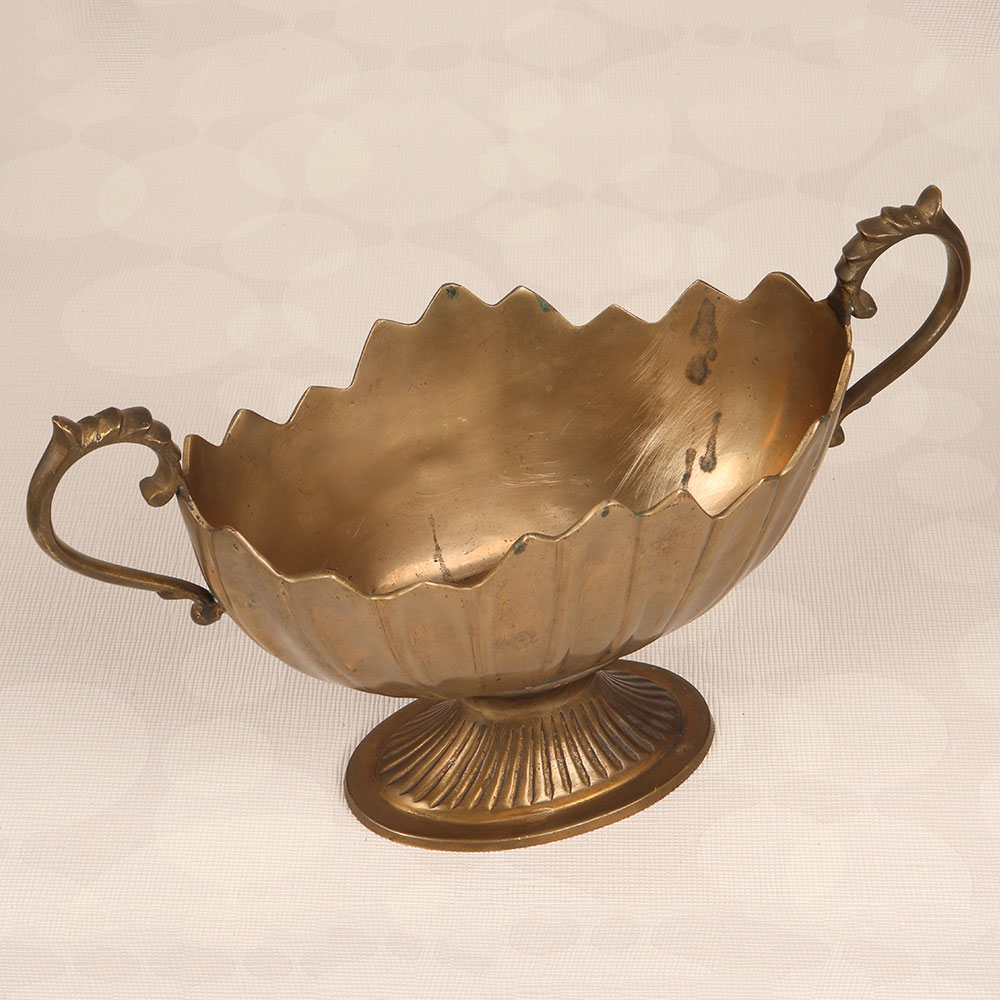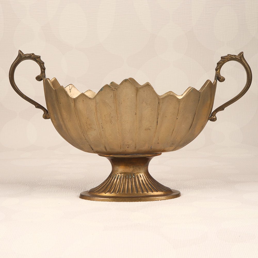 This Brass Fruit Basket is a timeless piece of functional art that seamlessly blends utility with elegance. Handcrafted with precision and passion by highly talented Indian artisans, this stunning fruit basket embodies the rich heritage of English Art, showcasing meticulous detailing and a lustrous antique brown finish. Crafted from high-quality brass, this basket features two delicately designed handles, adding a touch of sophistication to its overall charm. Its versatile design makes it a perfect addition to any setting, be it at home, office, restaurant, hotel, or cafe, where it effortlessly enhances the aesthetic appeal of any space. Not just a utilitarian item, this brass fruit basket is a visual delight, creating a sense of opulence and refinement. The warmth of its antique brown finish imparts a classic feel, making it an ideal decor piece for both traditional and contemporary interiors. This handmade masterpiece isn't just an accessory; it's an expression of craftsmanship and artistry. Moreover, it serves as a thoughtful and meaningful gift for your loved ones on special, festive, or auspicious occasions.