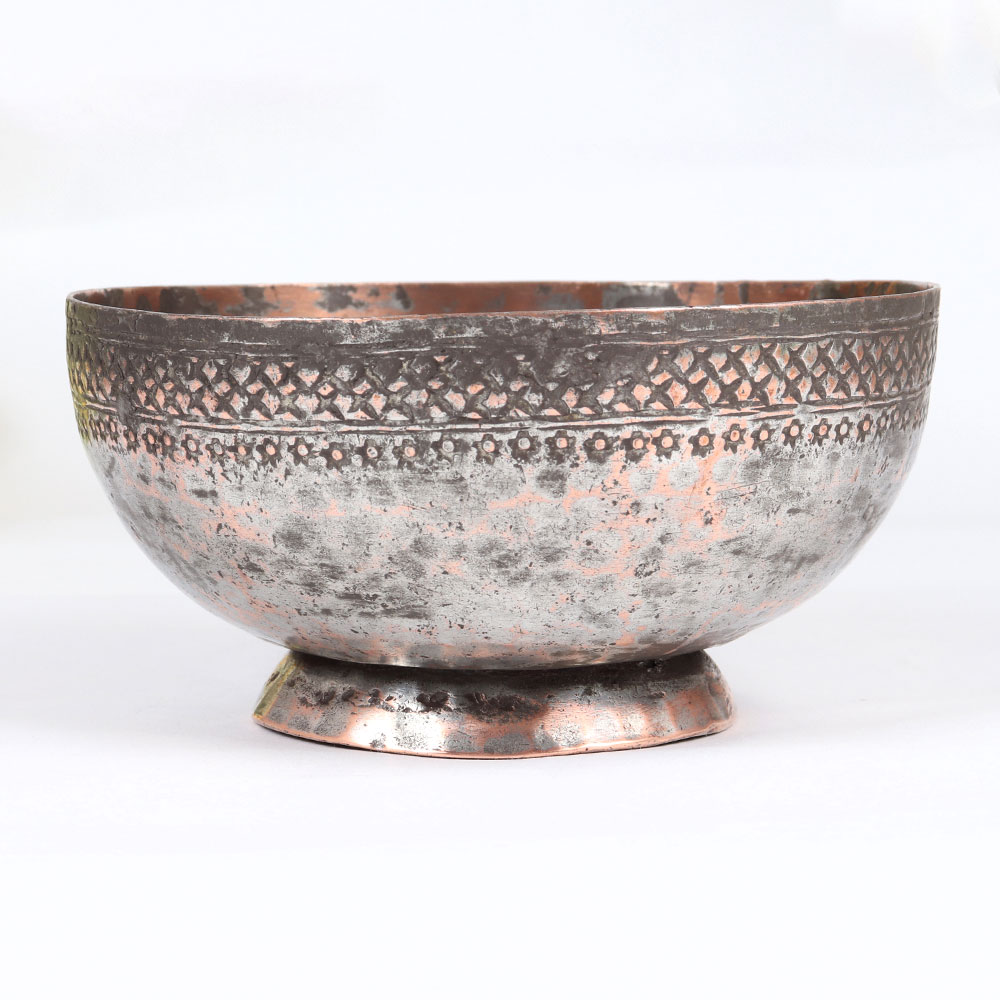 Adorn your living space with the timeless allure of our Vintage Copper Bowl which is a masterpiece meticulously crafted by highly talented artisans in the rich tradition of Islamic Art. This exquisite bowl, with its enchanting engraving and antique brown finish, embodies the elegance and craftsmanship of a bygone era. Handmade with precision from high-quality copper, this bowl is not merely a decorative piece but a testament to the artistry that has been passed down through generations. Its versatile design allows it to seamlessly enhance the aesthetic of any setting, whether at home, in the office, a restaurant, hotel, or cafe. Beyond its decorative appeal, this copper bowl serves multiple purposes. Use it as a striking indoor flower pot, infusing nature's beauty into your surroundings. Alternatively, add it to your vintage collection, making a statement about your appreciation for art and history. As a thoughtful and unique gift, the Vintage Copper Bowl holds unparalleled charm. Present it to your loved ones on special, festive, or auspicious occasions, and share the beauty and legacy of Islamic craftsmanship with those who matter most.