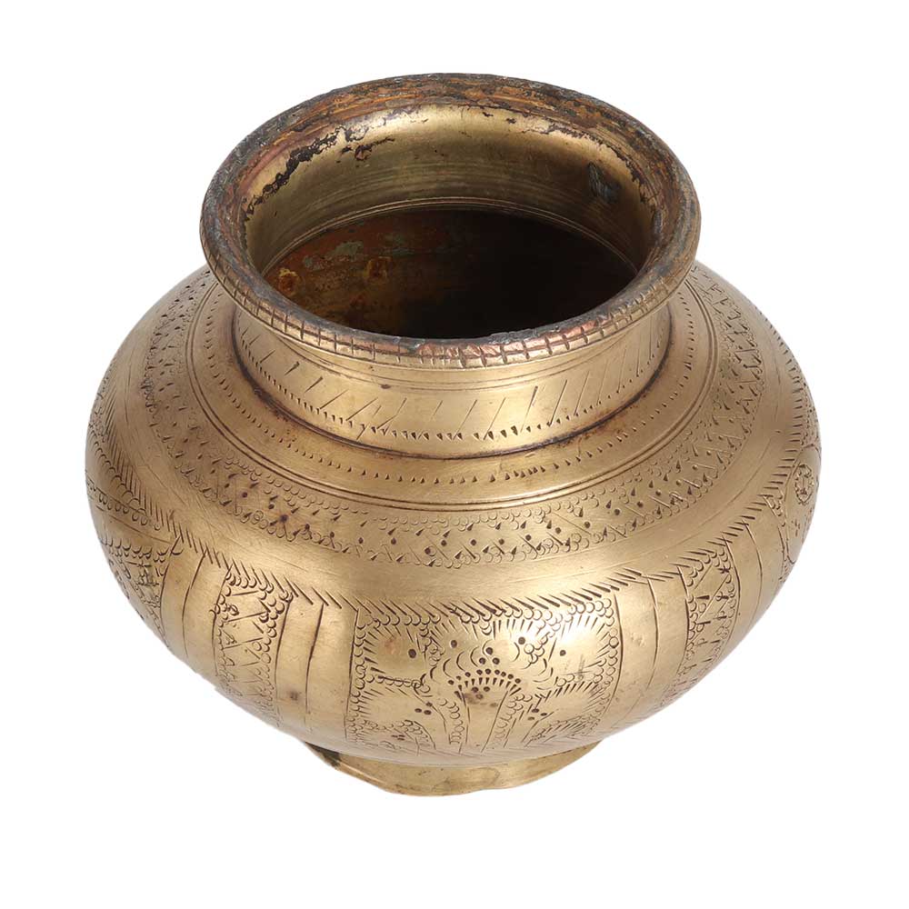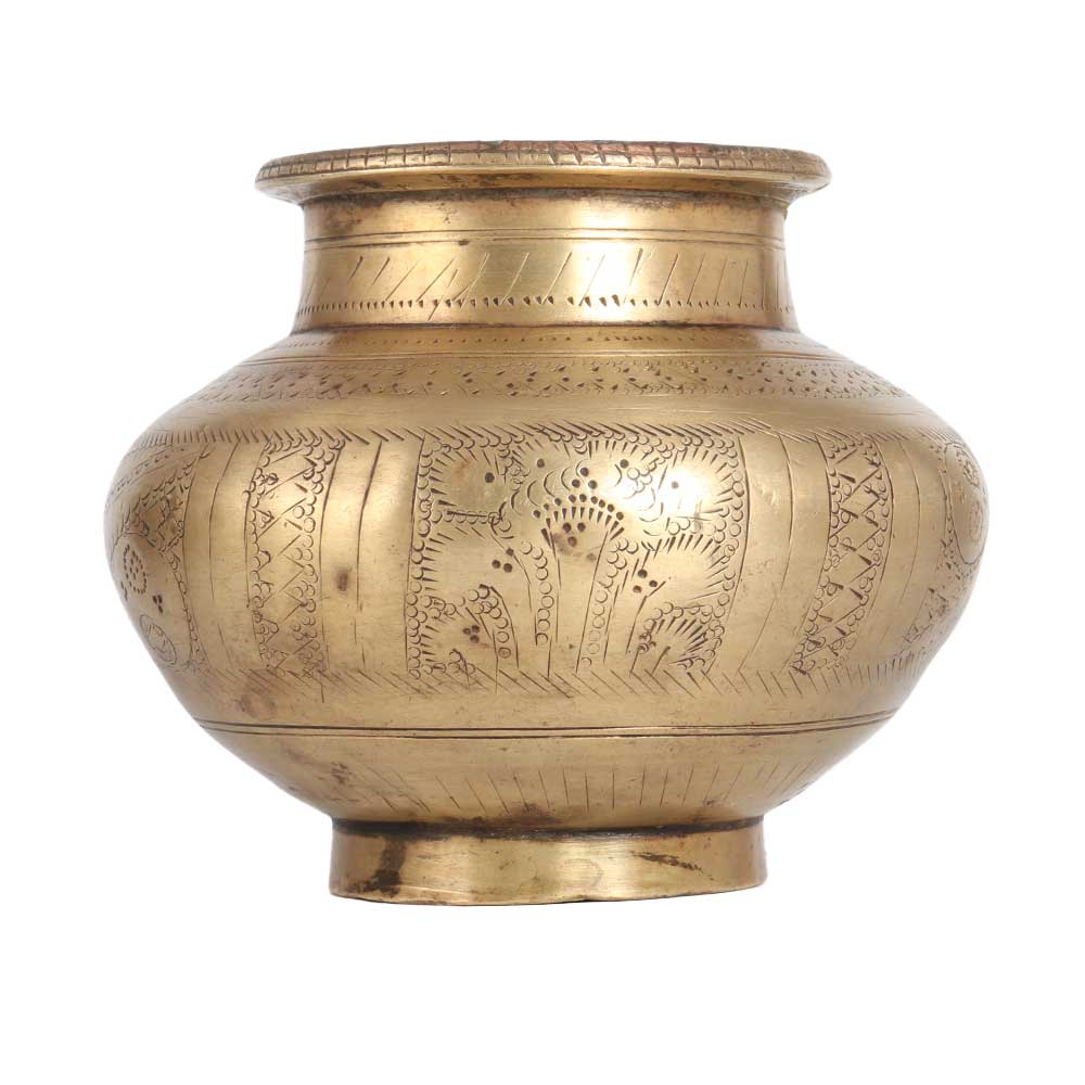 A brass lota engraved with beautiful motifs that will be a centre of attraction in your vintage art collection. This sturdy brass lota has an elegant brown finish that is often used to decorate stages, homes and offices. Buy a brass water pot online to get hassle-free delivery right to your doorstep. This brass water pot is made by highly skilled Indian artisans using traditional methods. Made of high quality brass, this lota will enhance the interior design of your home. Use this lota and offer water to the Sun God as it keeps the mind and body in balance. A beautiful gift for your loved ones on festive or auspicious occasions.