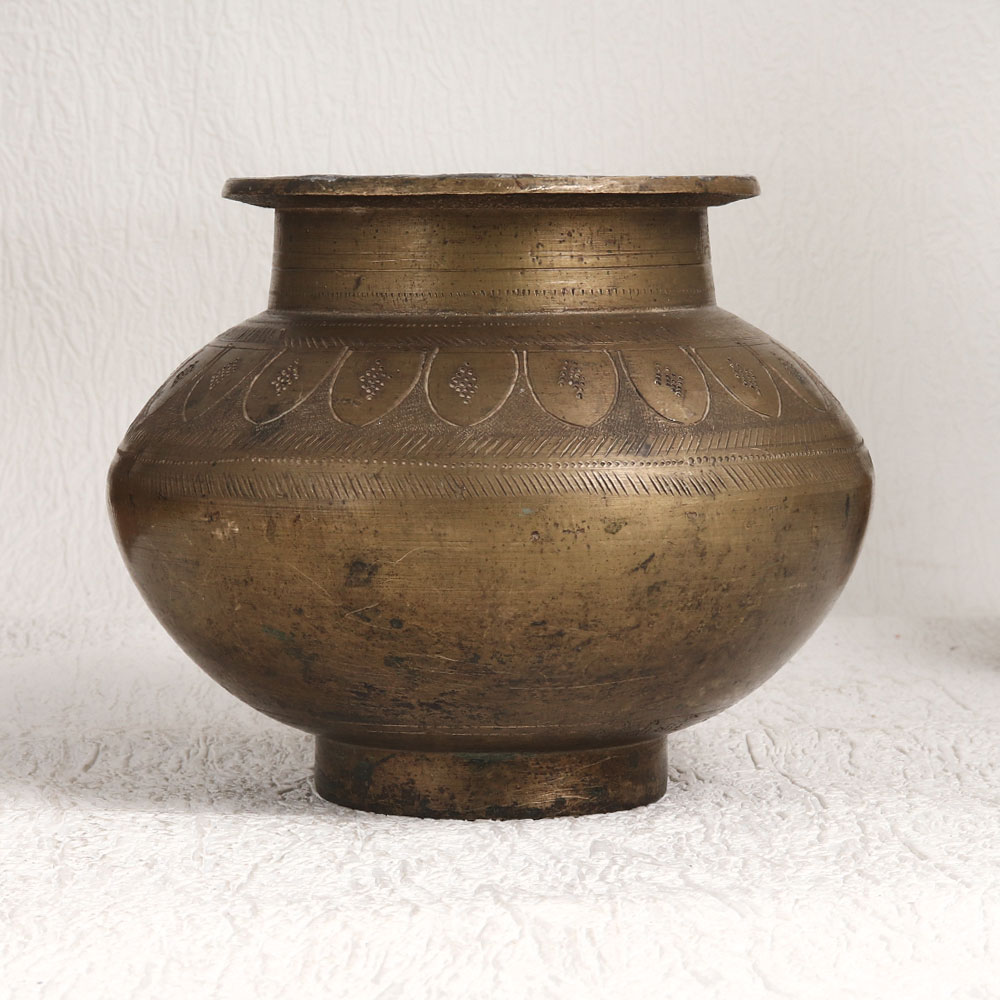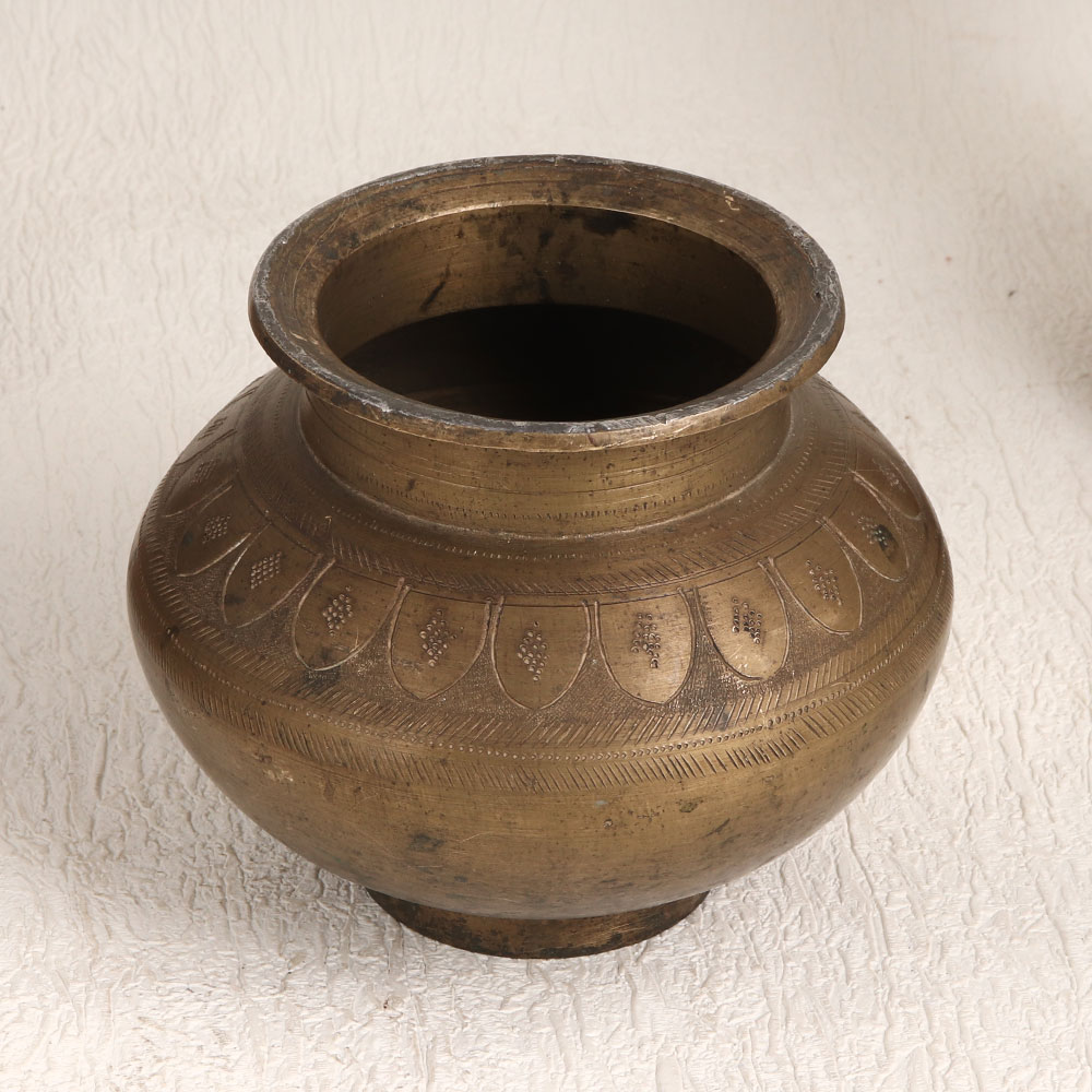 Adorn your space with the exquisite charm of our Vintage Brass Holy Water Pot. Handcrafted by highly talented Indian artisans in the timeless tradition of South Indian Art, this piece showcases the rich heritage of craftsmanship and spirituality. The pot boasts a stunning antique brown finish that accentuates its intricate engravings, making it a true work of art. Crafted from high-quality brass, it exudes durability and a touch of vintage elegance. Versatile in its use, this holy water pot can grace your home, office, restaurant, hotel, cafe, or shop as a tasteful decorative piece. It's not just for aesthetics, it serves a sacred purpose during havan and worship ceremonies, securely holding holy water for blessings. Temples will find this pot fitting for their prayer rituals, adding a touch of authenticity and reverence. For collectors, it's a valuable addition to your vintage treasures, perfect for exhibitions. This exquisite piece makes for a thoughtful gift on special, festive, or auspicious occasions, embodying tradition, spirituality, and artistic excellence.