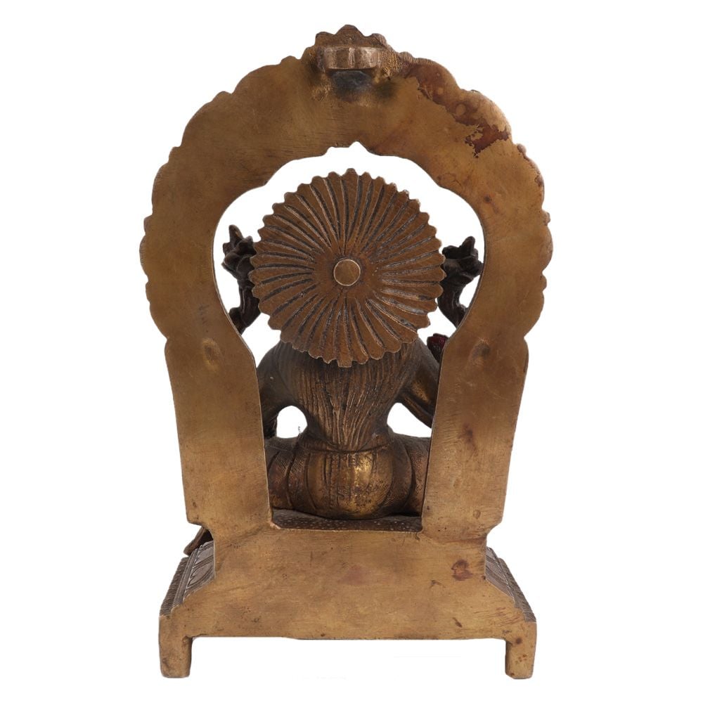 Engraved Brass Sitting Statue Blessing Pose With Owl