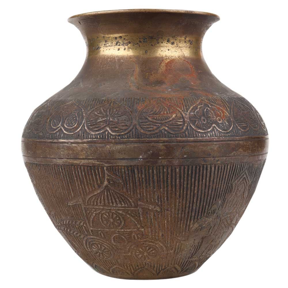 Engraved Brass Water Pot With King Riding An Elephant Chariot