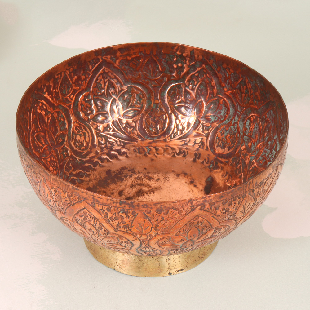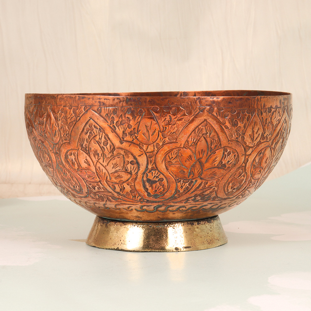 Discover the mesmerizing beauty of the Vintage Copper Islamic Bowl, a true masterpiece of Peshawari Art that will transform your space into a sanctuary of timeless elegance. Crafted with unparalleled skill and attention to detail, this exquisite bowl is a testament to the rich cultural heritage of the Islamic world. Elevate the ambiance of any room with the captivating presence of this Vintage Copper Islamic Bowl. Its rich history and exceptional craftsmanship make it a true work of art, evoking a sense of wonder and cultural appreciation in all who behold it. Bring the allure of the Islamic world into your home and experience the transformative power of this stunning piece. Whether you're a collector of fine art, a lover of world cultures, or simply seeking to add a touch of elegance to your decor, this Vintage Copper Islamic Bowl is a must-have addition to your collection. Immerse yourself in the timeless beauty of Peshawari Art and let this exquisite bowl inspire and captivate you every day.
