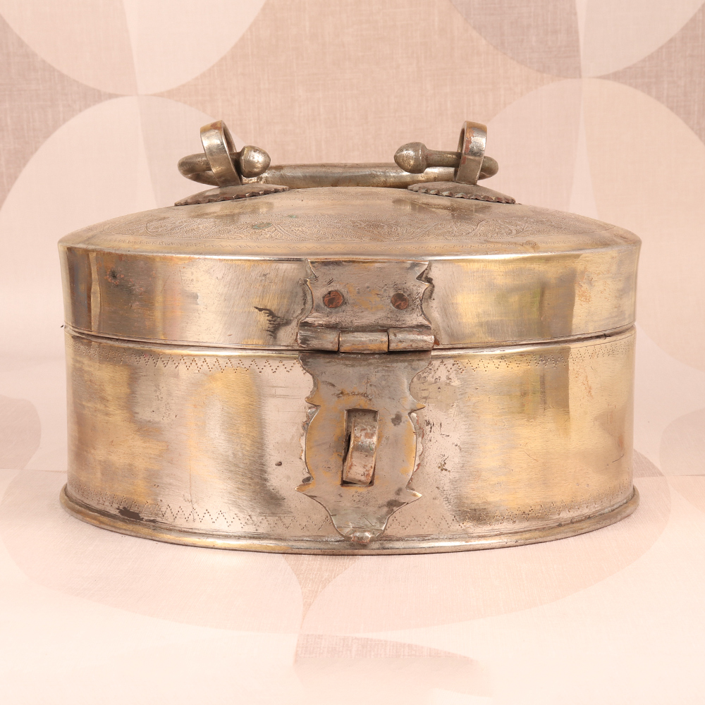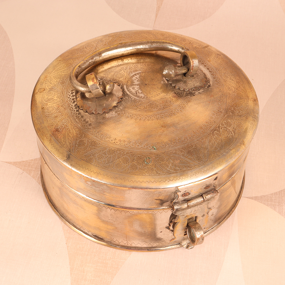 Elevate your jewelry collection with this stunning Vintage Brass Jewelry Box. Crafted with meticulous attention to detail, this heirloom-quality piece will captivate anyone who lays eyes on it. This vintage-inspired jewelry box is more than just a storage solution - it's a work of art that will elevate the look of any vanity or dresser. The lustrous brass finish and ornate engraving evoke the glamour of a bygone era, making this box a true conversation piece. Whether you're looking to keep your everyday jewelry organized or want to protect your most cherished heirlooms, this jewelry box is up to the task. Its roomy interior provides ample space for rings, necklaces, bracelets, and more, ensuring your collection stays tidy and secure. And with the sturdy handle, you can easily transport your jewelry from one room to another. Treat yourself to a touch of vintage opulence, or surprise a loved one with this exquisite Vintage Brass Jewelry Box. Its timeless beauty and exceptional craftsmanship will be appreciated for years to come.