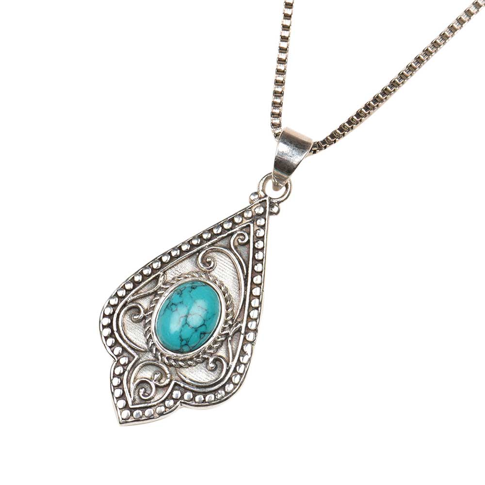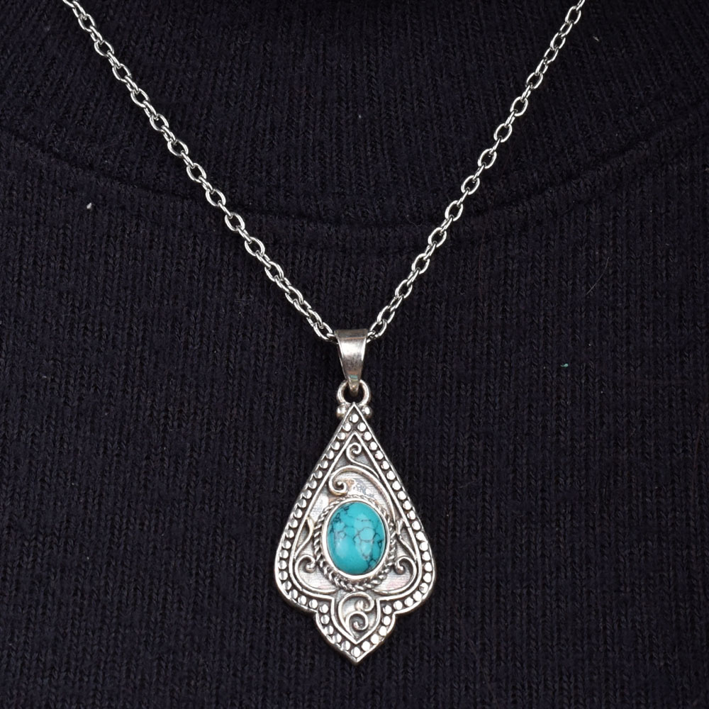 • Engraved Leaf Turquoise 92.5 Sterling Silver Pendant