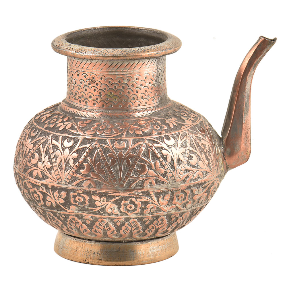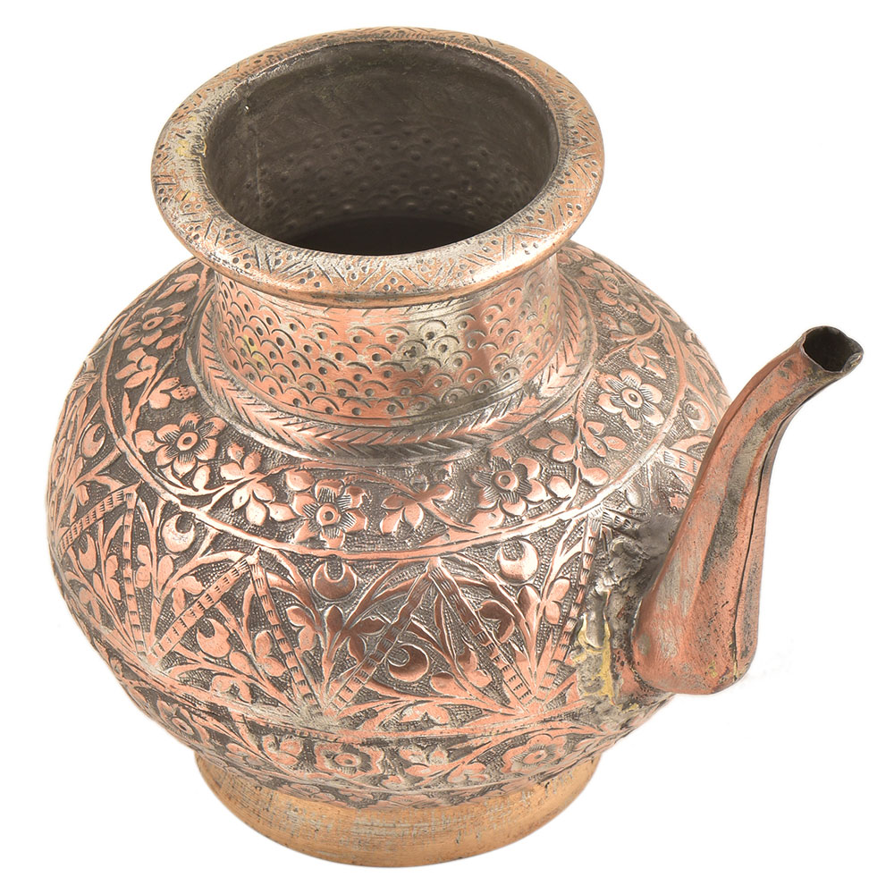 Engraved Leaves Design Engraved Copper Water Pot With A Spout