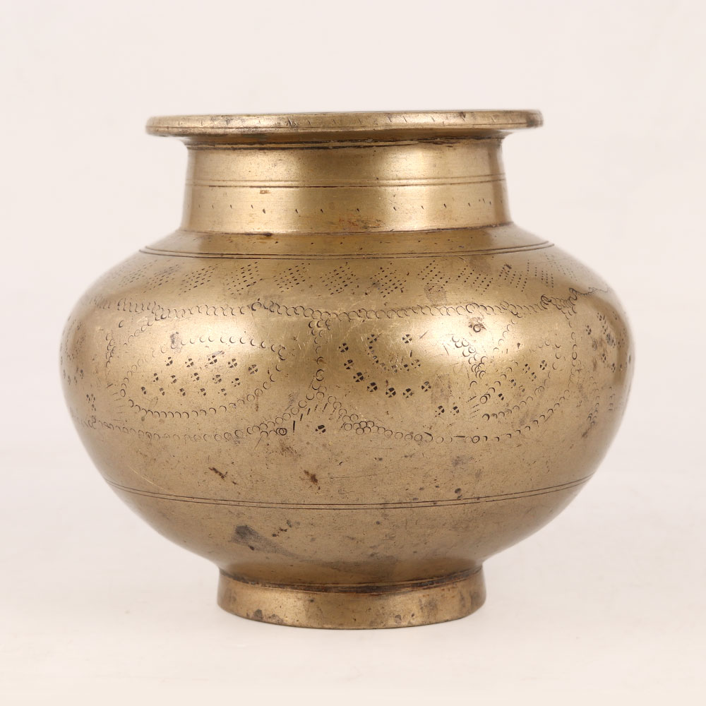 Immerse your space in an aura of sacred elegance with our exquisite Brass Holy Water Pot, a reverent embodiment of tradition and artistry. Handcrafted with utmost devotion by highly skilled Indian artisans from the enchanting landscapes of South India, this lota is more than a decorative piece – it's a conduit for spiritual rituals and positive energy. Adorned with intricate patterns and meticulously engraved details, the antique brown finish exudes a timeless charm, lending a touch of antiquity to any setting. Versatile in its purpose, this lota serves as a vessel for holy water during Hindu rituals and havans, bestowing an air of sanctity to your surroundings. It's the perfect accompaniment for offering water to revered deities like Shivling and Sun God. Beyond its ritualistic significance, this lota doubles as a delightful flower decoration base, harmonizing well with diverse spaces - be it homes, offices, hotels, restaurants, cafes, or shops. Elevate your surroundings with the grace and positivity it exudes. Consider it a meaningful gift option for your loved ones, a gesture that holds deep resonance on special, festive, or auspicious occasions.