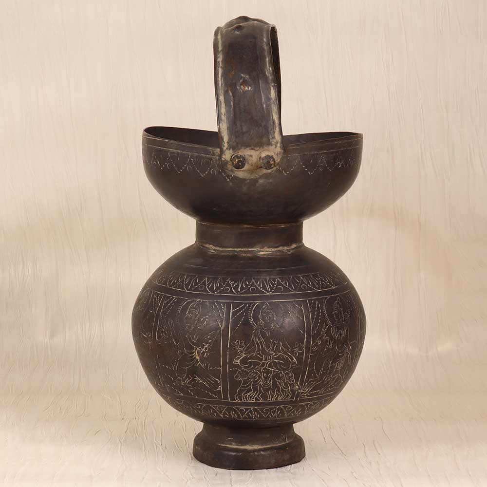 Unlock the power of ancient traditions with this exquisite vintage brass Kamandal. Crafted with meticulous attention to detail, this stunning piece features a dark finish and is engraved with beautiful motifs that pay homage to centuries of spiritual practice. This Kamandal is more than just a functional vessel - it's a work of art that can transform your daily rituals into meaningful, mindful experiences. Whether you're using it to hold sacred water for puja, storing incense, or simply displaying it as a stunning decorative piece, this Kamandal will elevate your space and connect you to the wisdom of the ages. Designed for spiritual seekers, meditation practitioners, and anyone who appreciates the beauty of traditional craftsmanship, this Kamandal will infuse your life with a sense of grounding and centeredness. Its tactile, substantial feel and captivating visual appeal make it a true heirloom piece that will be cherished for years to come. Elevate your sacred rituals and unlock the transformative power of this exquisite vintage brass Kamandal.