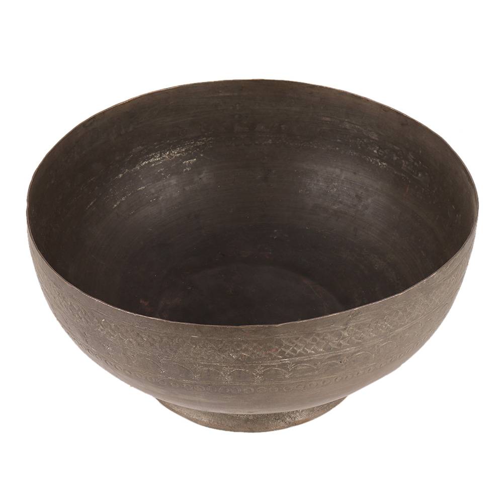 Etched Brass Pedestal Bowl In Dark Finish