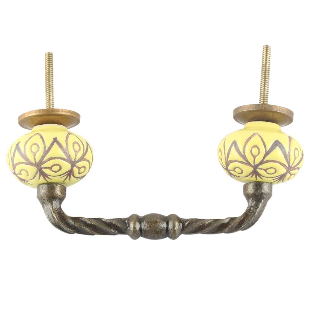 Etched Ceramic Cut Bridge Handle in Yellow. Ideal for Drawer, Dresser, Cabinet, Wardrobe, Cupboard and Almirah etc.