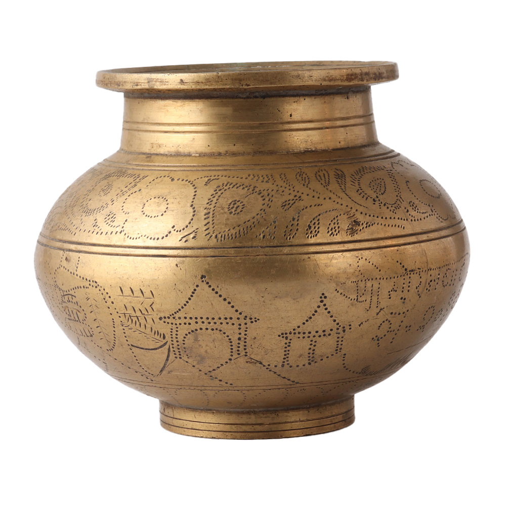 Etched Holy Brass Pot For Worship