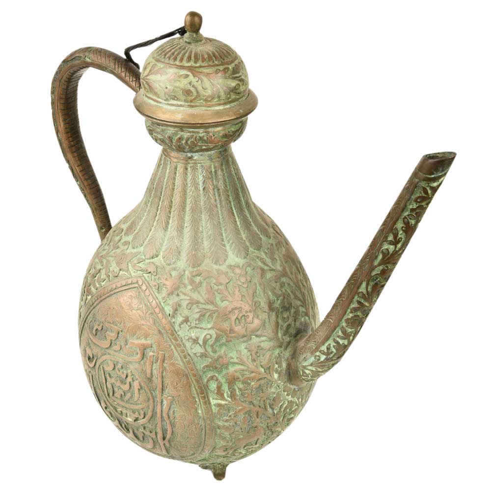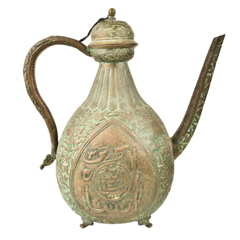 Ethnic Green Brass Islamic Art Surahi With Engraved Handle