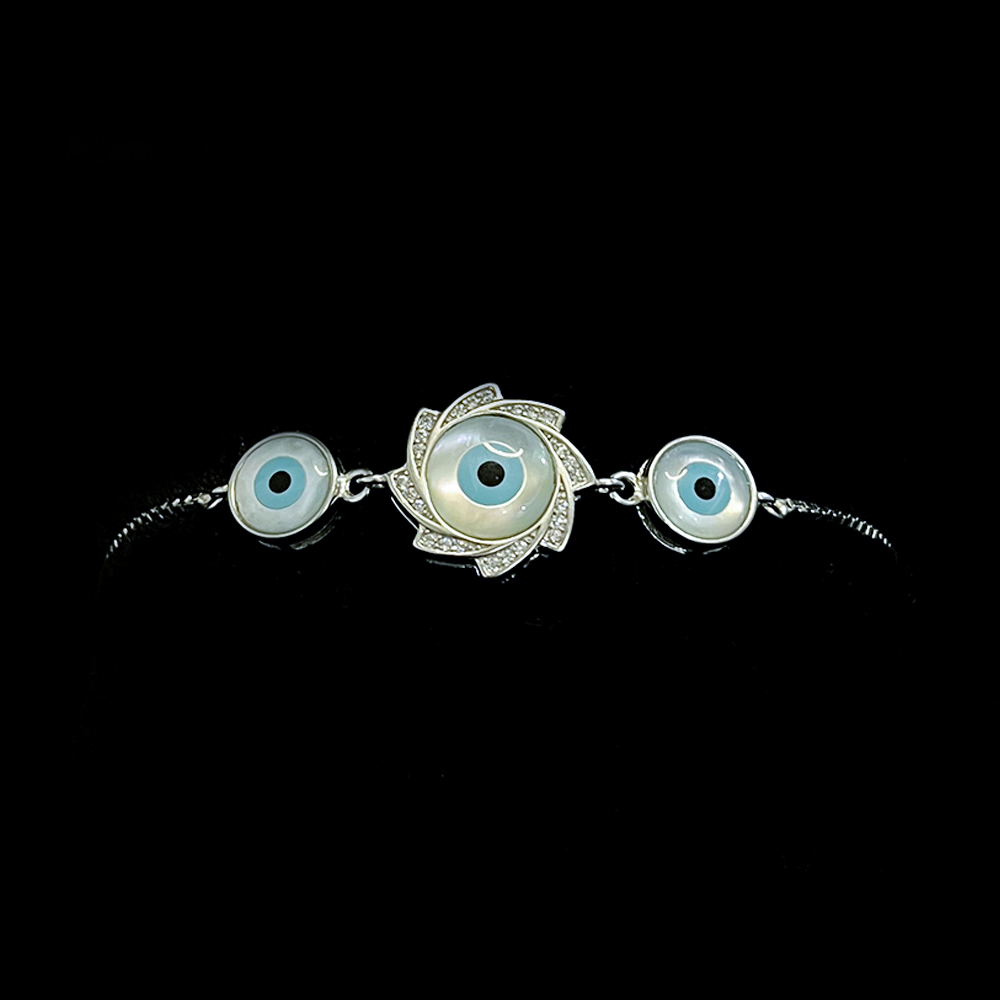 The bracelet centers around a defined evil eye motif supported by complementary side elements, creating visual harmony without excess detailing. Its purpose driven design makes it suitable for regular wear while maintaining cultural relevance and gifting value.