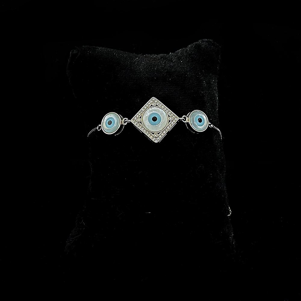 • Evil Eye 92.5 Sterling Silver Rhombus Bracelet with Beads