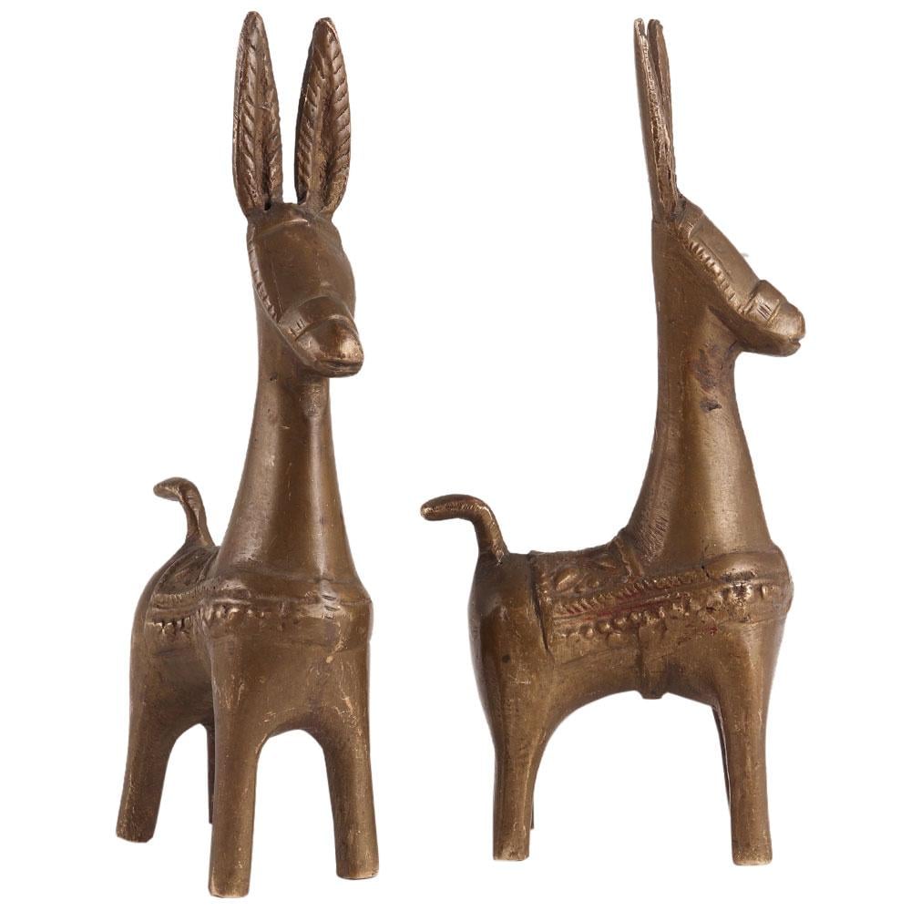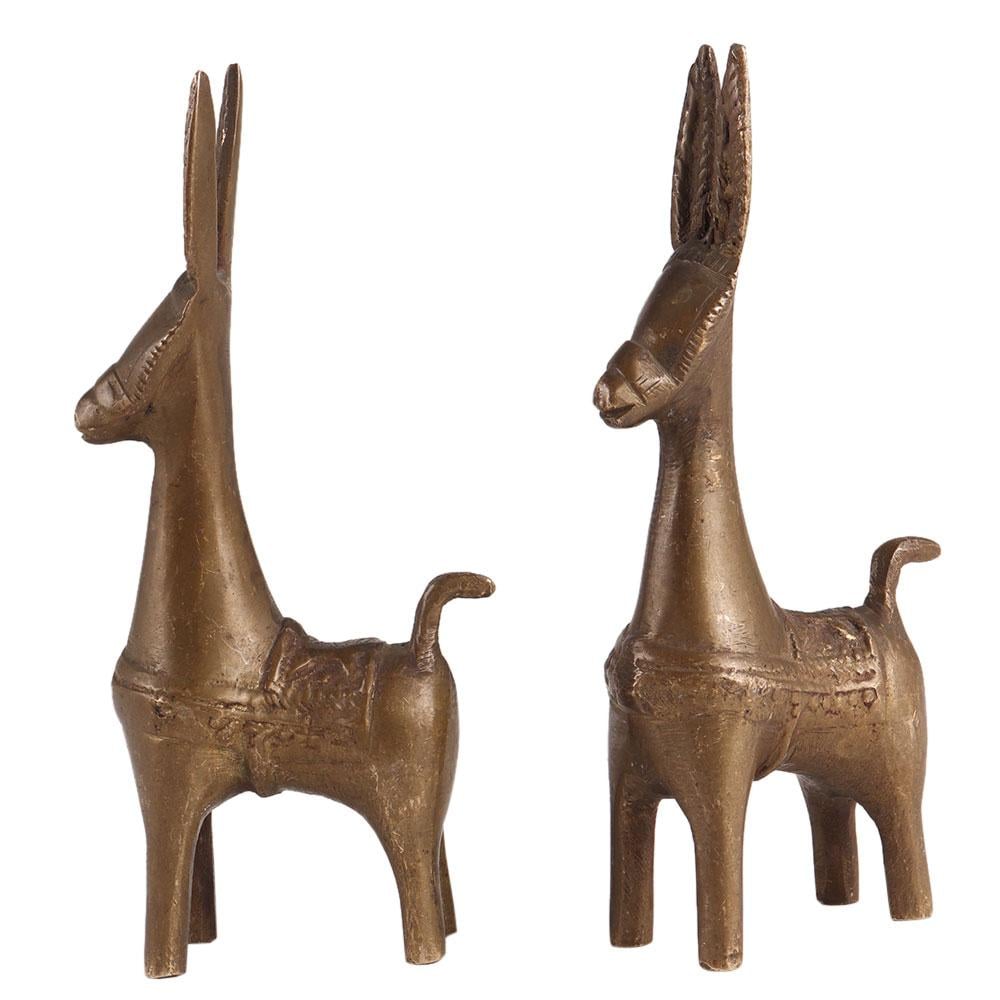 • Exaggerated Brass Bankura Horse Statue In Pair